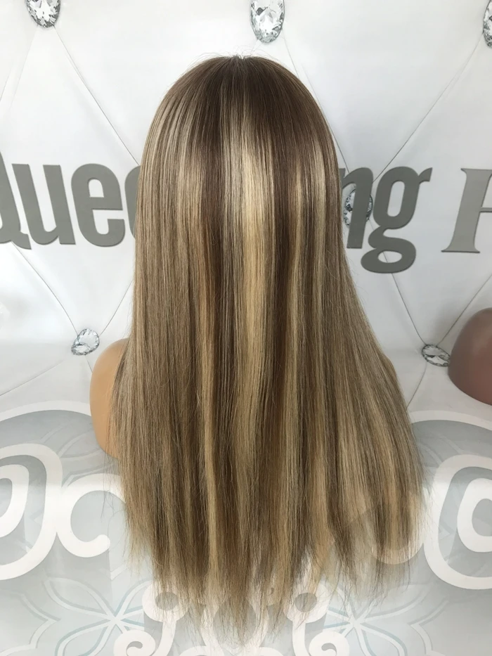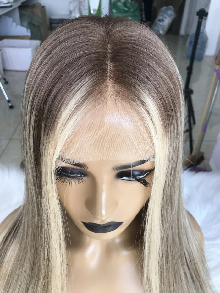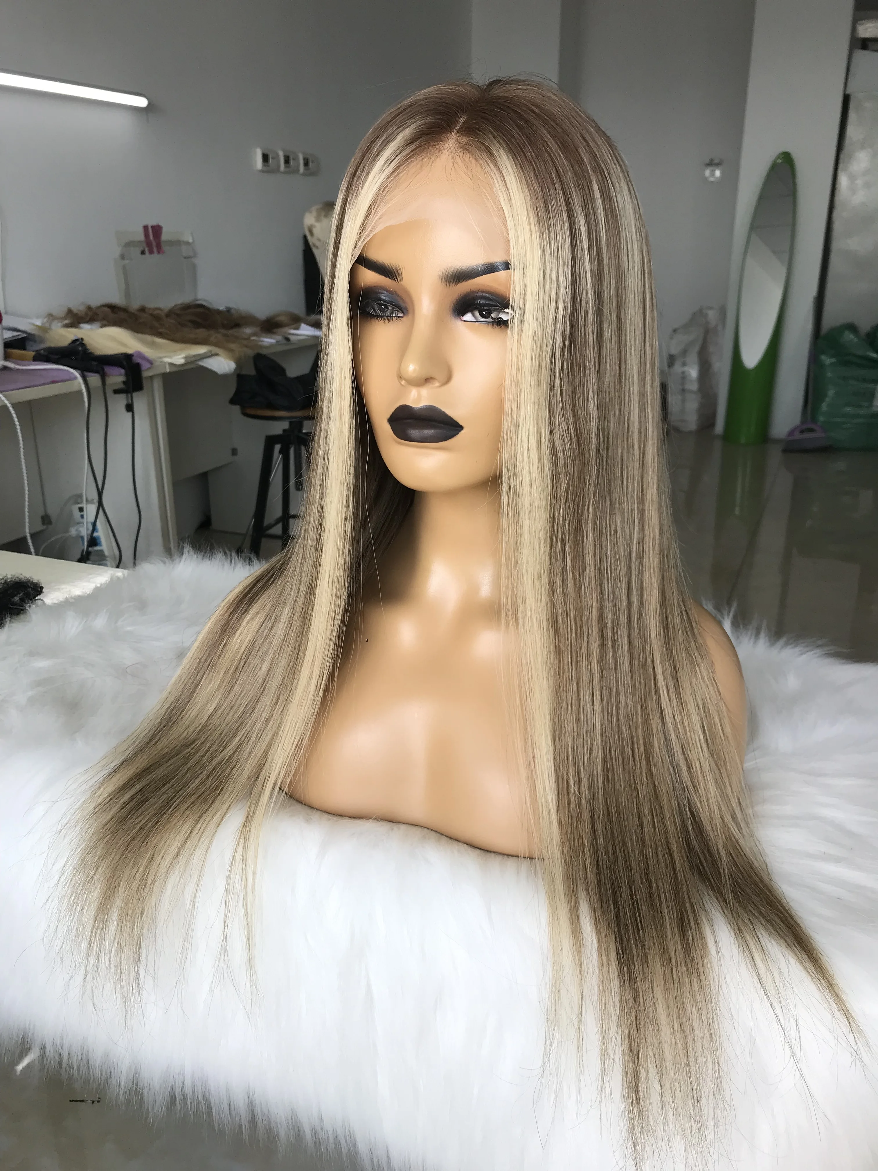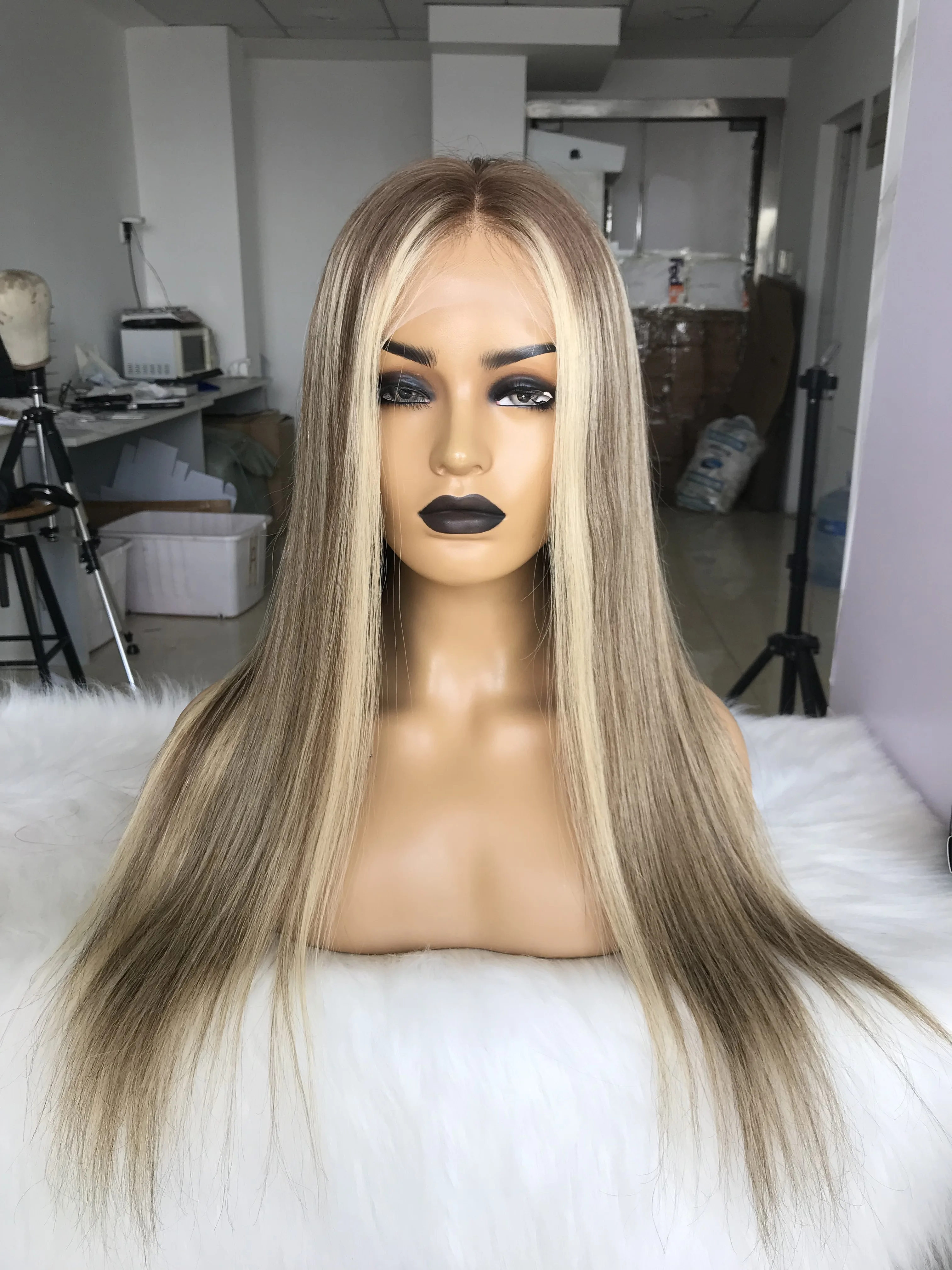 QueenKing волос полный Европейский человеческих волос парик шнурка 150% плотность CAMI Цвет T7724 эффектом деграде (переход от темного к Цвет парики для женщин