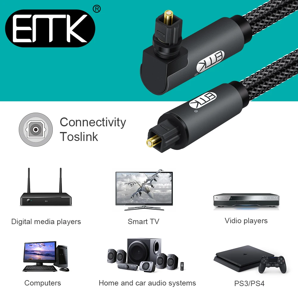 Оптический кабель EMK 5,1, цифровой прямоугольный кабель Toslink с углом 90 градусов, оптоволоконный кабель SPDIF, 1 м, 2 м для Xbox 360, DVD, ТВ, динамика, звуковой панели
