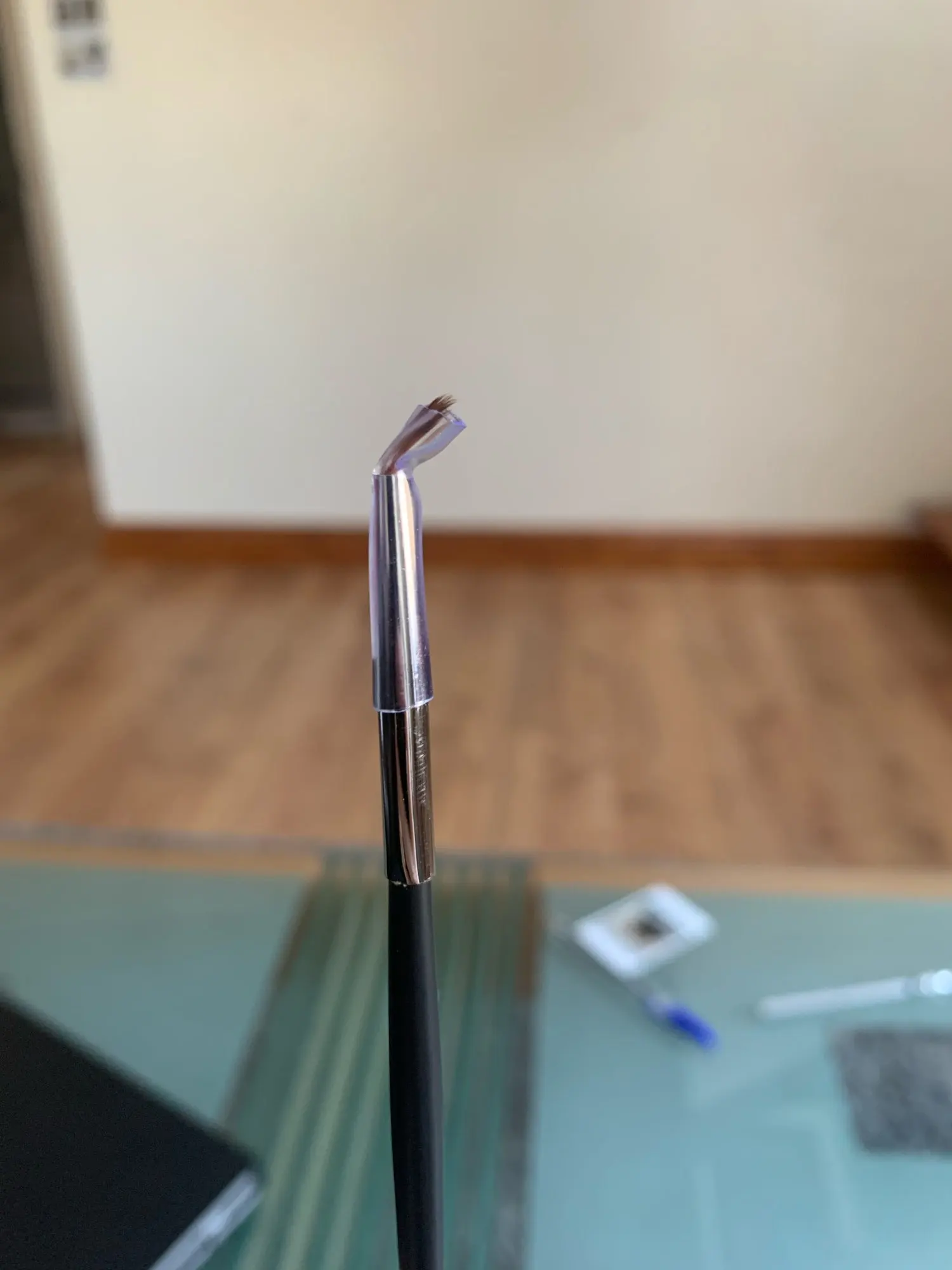 Кисть повреждена. Упаковка плохая. Ничего для защиты волосков и всей кисти.