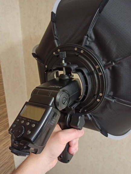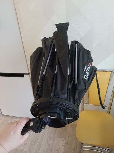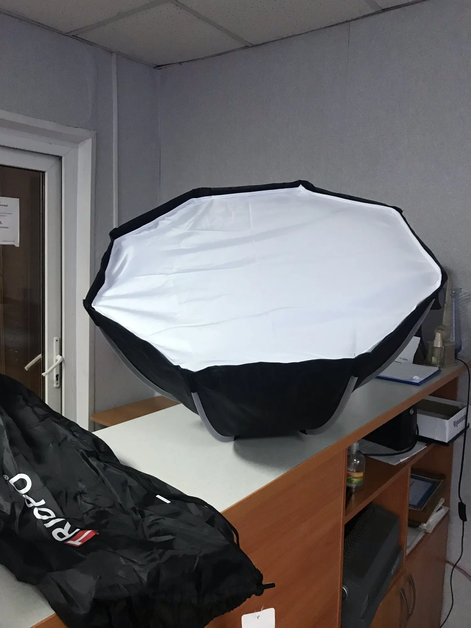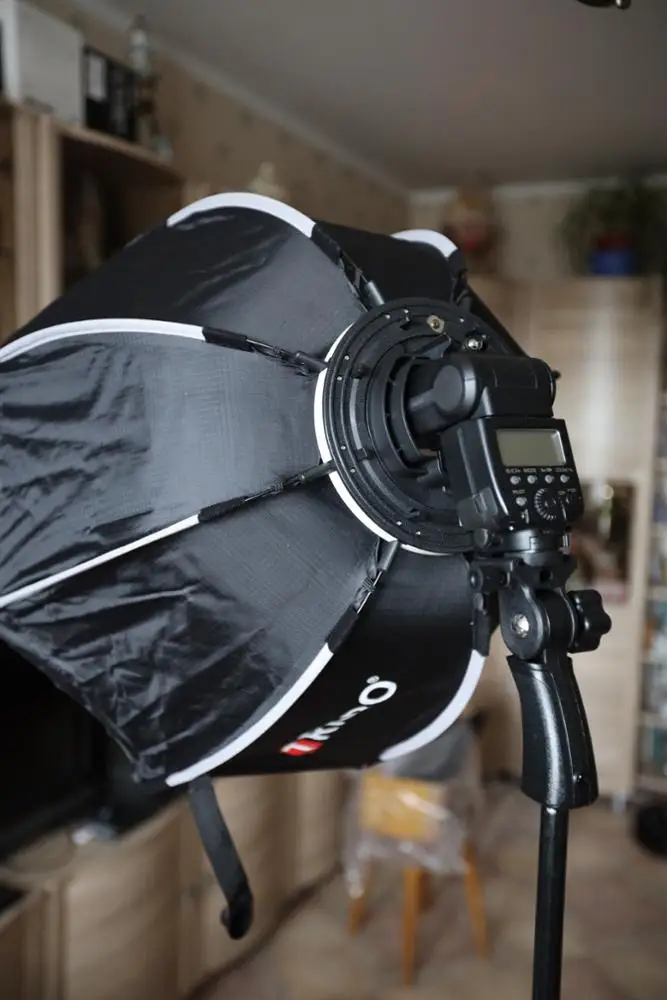 Октобоксом полностью доволен. Поначалу колеблелся между 55см и 90см, остановился на 55, его хватает за глаза для моих задач. С лихвой заполняется Godox tt520, заказанный у этого же продавца. Поначалу туго собиралось, но потом понял, что надо занимать сначала противоположные спицы, аналогично же разбирать. Октобокс рекомендую!!!