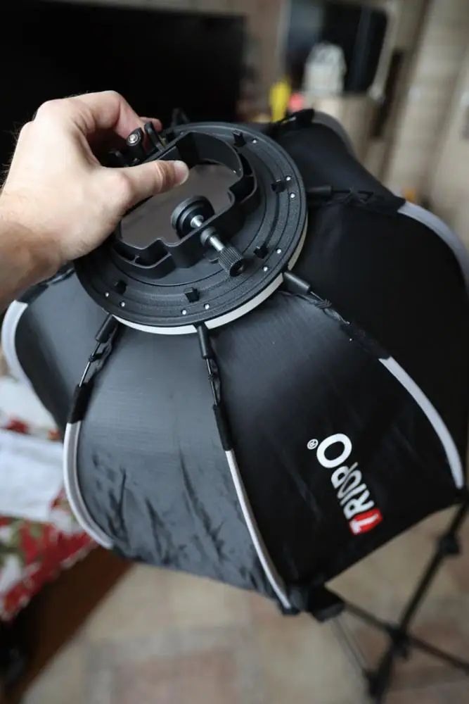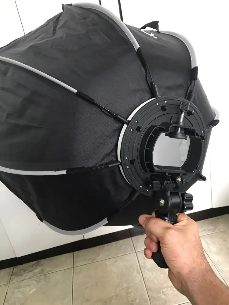не плохой софтбокс. единственное замечание - рычаги фиксаторы спиц сделаны из пластмассы и без ребер жёсткости. может легко сломаться если не контролировать зажим. будьте осторожны. у меня один сломался. приклеить не реально. на излом клей не держит)))) а в остальном все хорошо))))