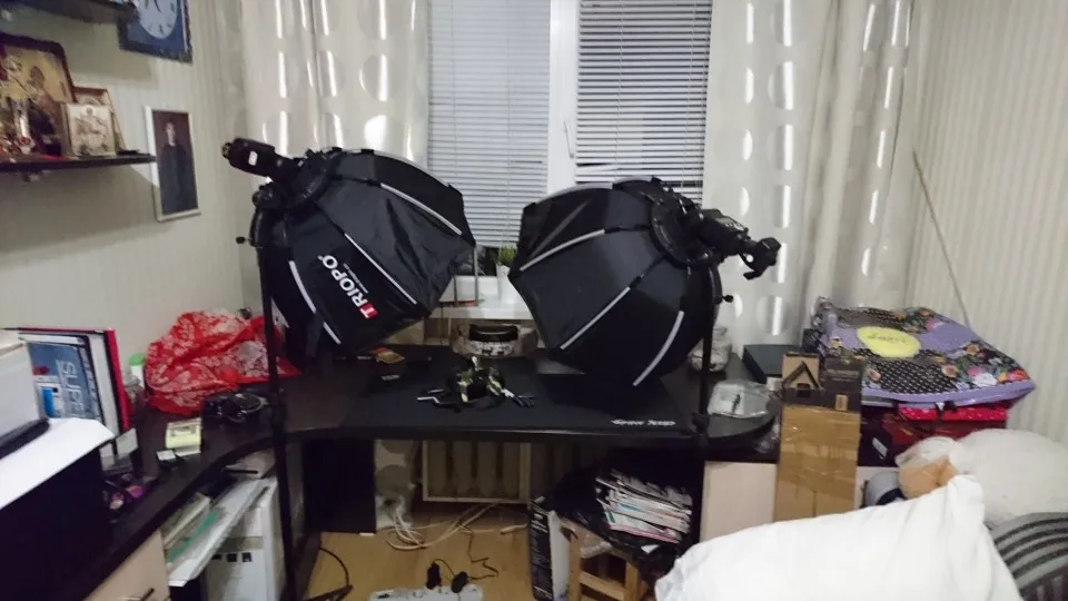 Заказал два софтбокса. Пока раскрывал в рабочее положение, чуть не сломал пальцы - очень туго идут последние 2-3 прута. В целом покупкой очень доволен. Выглядит солидно, ручками вообще можно убить, сделаны из очень твердого пластика.