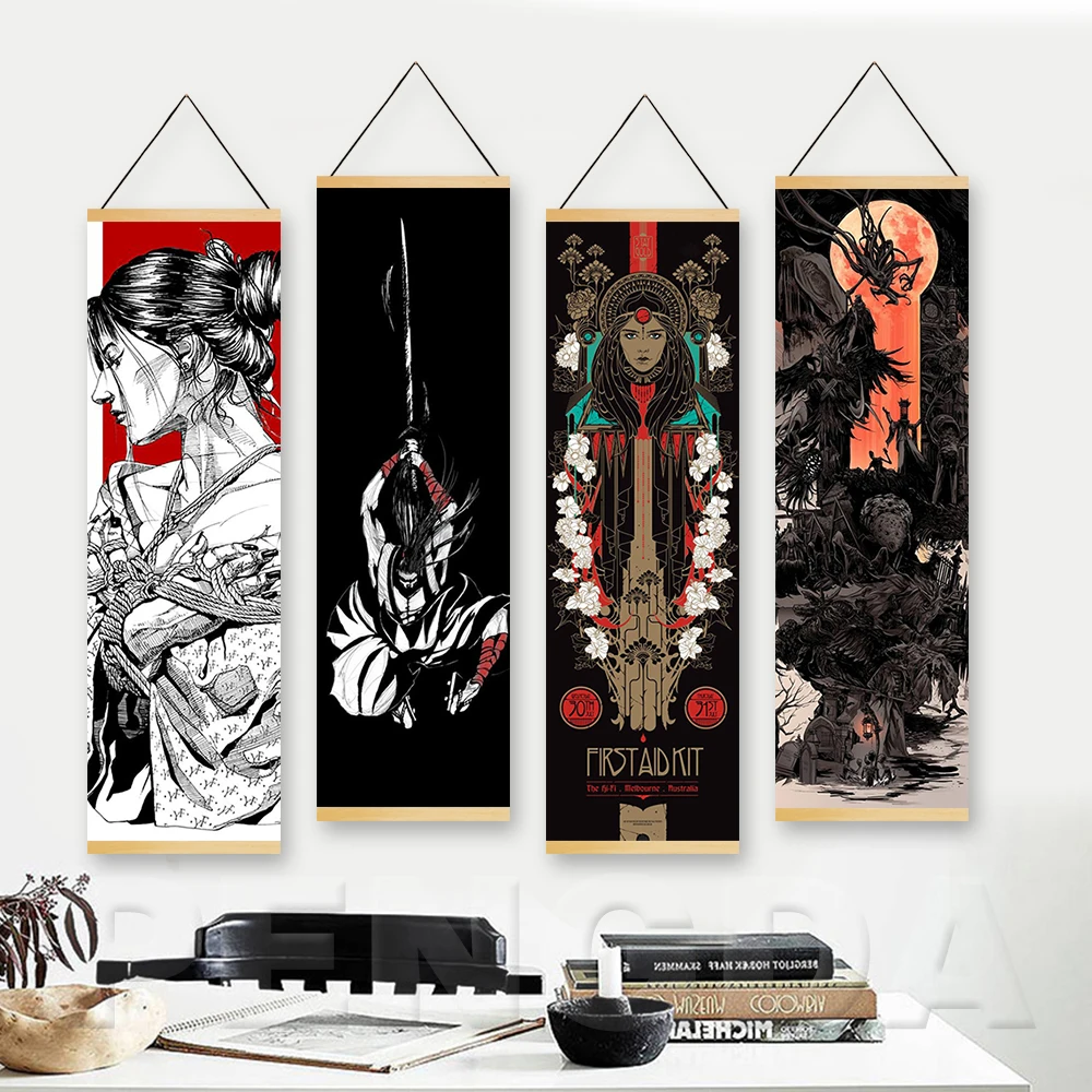 Печать на холсте постер из массива дерева подвесной свиток домашний...