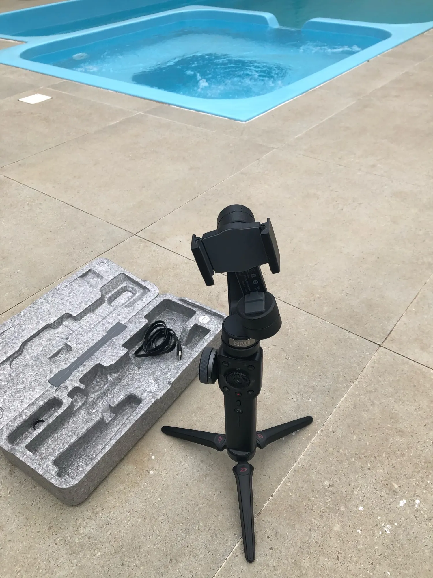 Доставлен был Сбер логистикой до постамата. Был слегка помят уголок коробки, не критично. Сам стабилизатор сделан очень качественно и работает безупречно. С большими смартфонами надо использовать противовес, иначе в лучшем случае будет большой расход батарейки, в худшем перегрузка двигателей по току и срыв стабилизации. Главный нюанс: ось вращения самого ближнего к смартфону рычага должна находится как можно ближе к центру тяжести смартфона.
