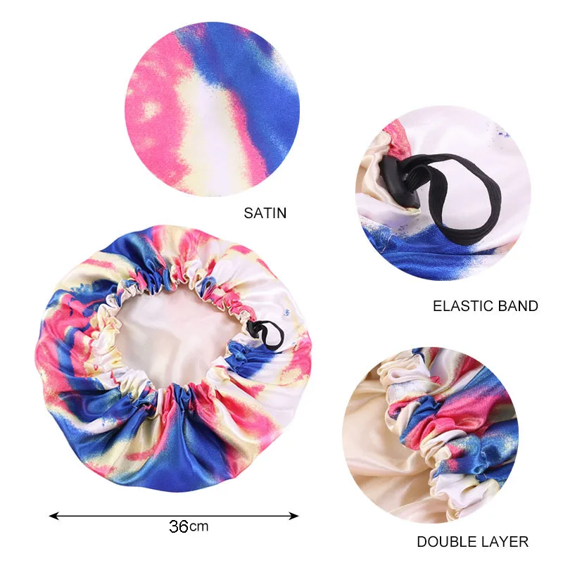 K-16A детская шелковистая атласная двухслойная Регулируемая Шапочка для сна с цветочным рисунком