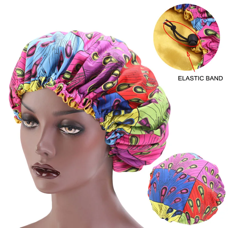 Новая очень большая шапочка для сна, тканевая шапочка с Африканским принтом из Анкары, шапочка для сна с атласной подкладкой, женская шапочка для сна, тюрбан