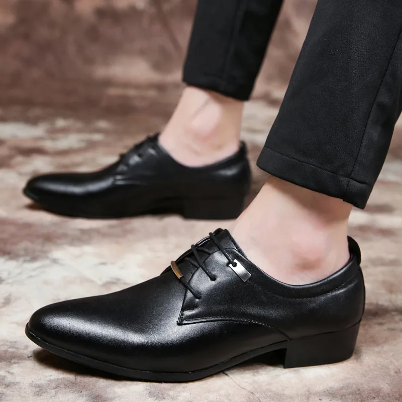 Туфли мужские кожаные, с острым носком, в британском стиле ретро