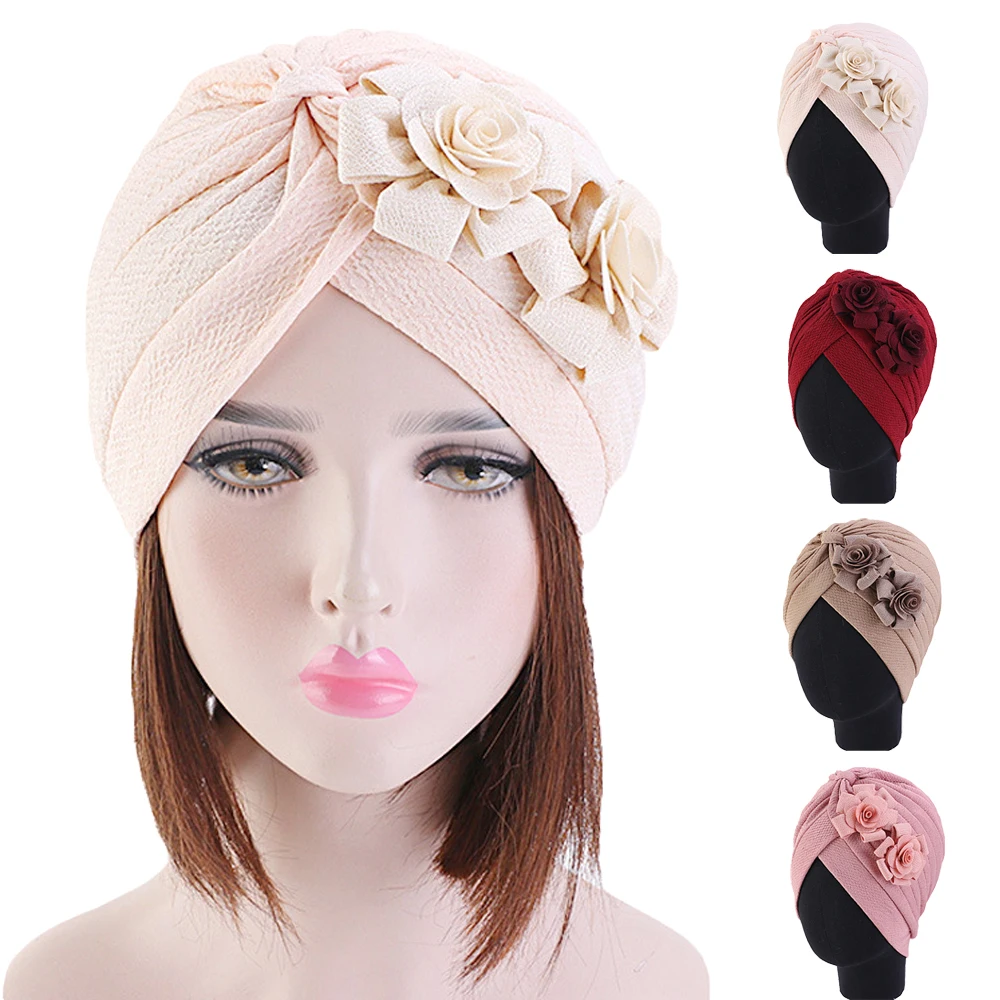 Тюрбан Женский, индийский, эластичный, с оборками, для химиотерапии, шапочка с цветком