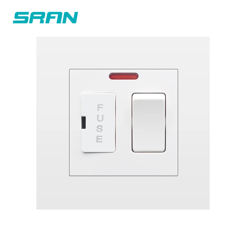 SRAN UK 13a выключатель питания с предохранителем, белый/черный/золотой Новый огнестойкий PC Панель 86 мм * 86 мм с красным светодиодным индикатором настенный выключатель