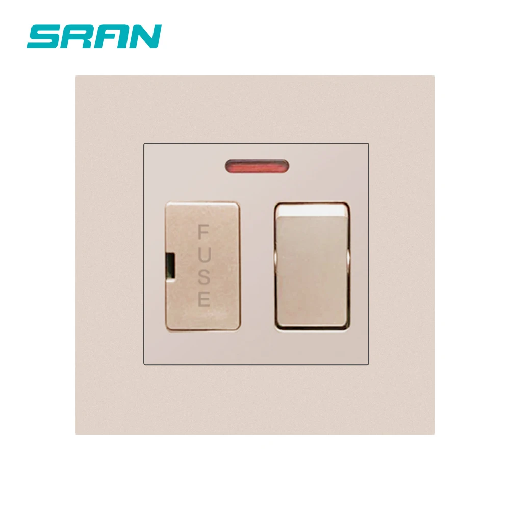 Выключатель питания с плавким предохранителем SRAN UK 13a, белыйчерныйзолотой Новый огнестойкий ПК-панель 86 мм * 86 мм с красным светодиодным индикатором, настенный выключатель