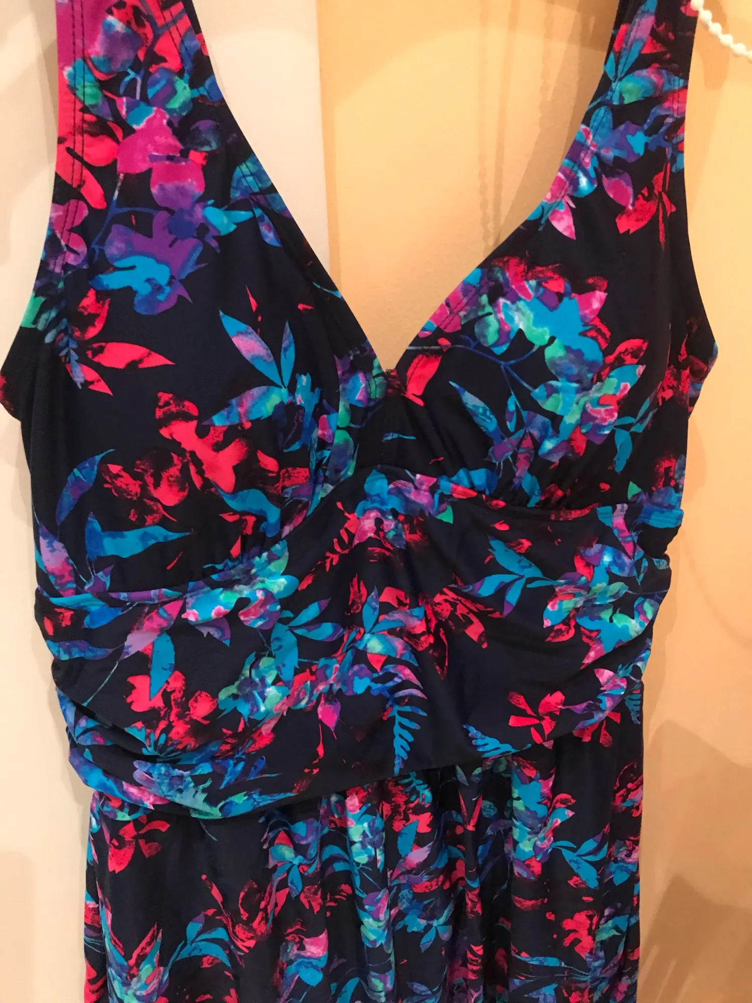 Доставка довольно быстрая, около 3 недель. Купальник понравился. Начитавшись комментариев взяла на размер побольше, и правильно сделала. При росте 164 на ОГ 108 и ОБ 117 2XL сидит отлично, ничего ниоткуда не вылезает) Расцветка понравилась, качество тоже хорошее. У купальника нормальные плотные чашки без всяких пуш-апов с косточками по бокам. Ассиметричная юбочка смотрится хорошо, достаточно длинная, можно ее завязать, когда плаваешь.