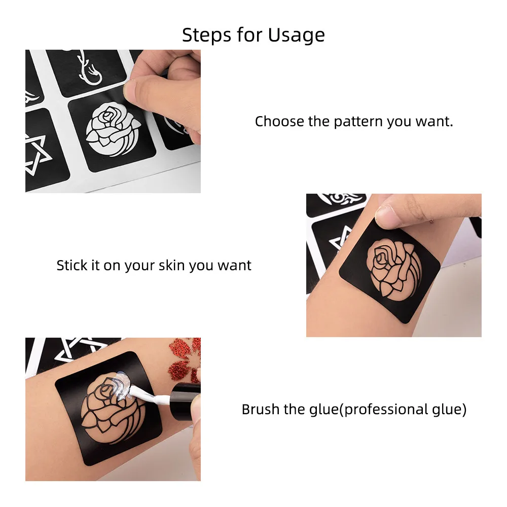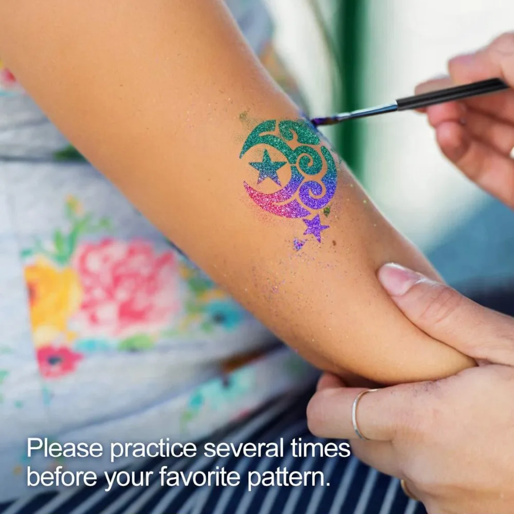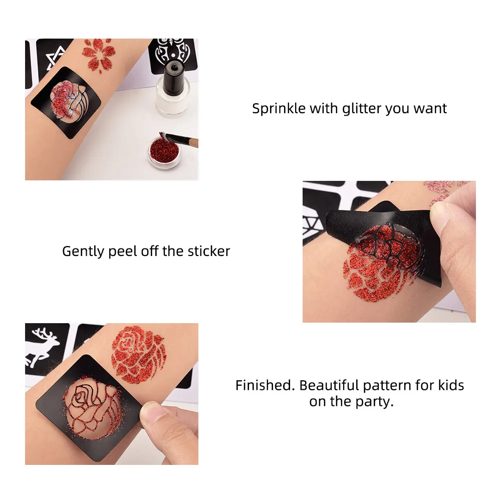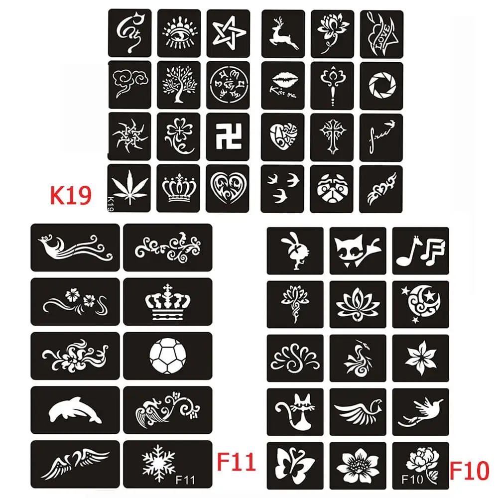 Трафареты для татуировок хной с блестками, 20 видов трафаретов для татуировок, для девочек и детей