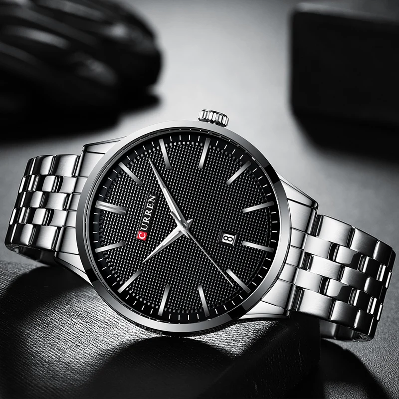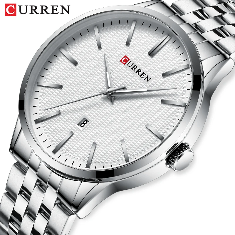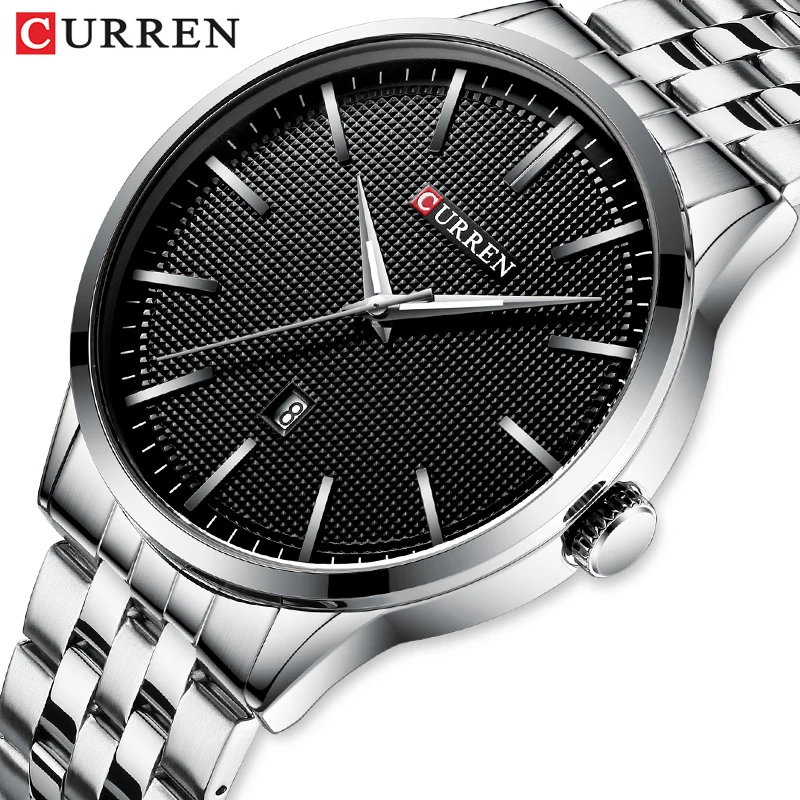 Классические мужские часы CURREN со стальным ремешком, деловые флаг...