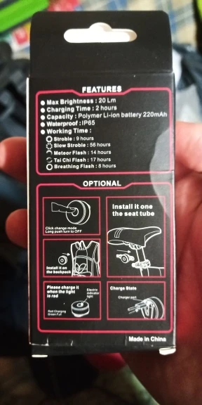 Очень хороший продукт, свет с достаточной интенсивностью, перезаряжаемый, очень хорошо упакованный, мне очень нравится использовать с моим велосипедом. I Recommend The seller, I Will buy more. Он очень быстро прибыл в Коста-Рику. Они отправили очень быстро, хорошее общение с продавцом.
