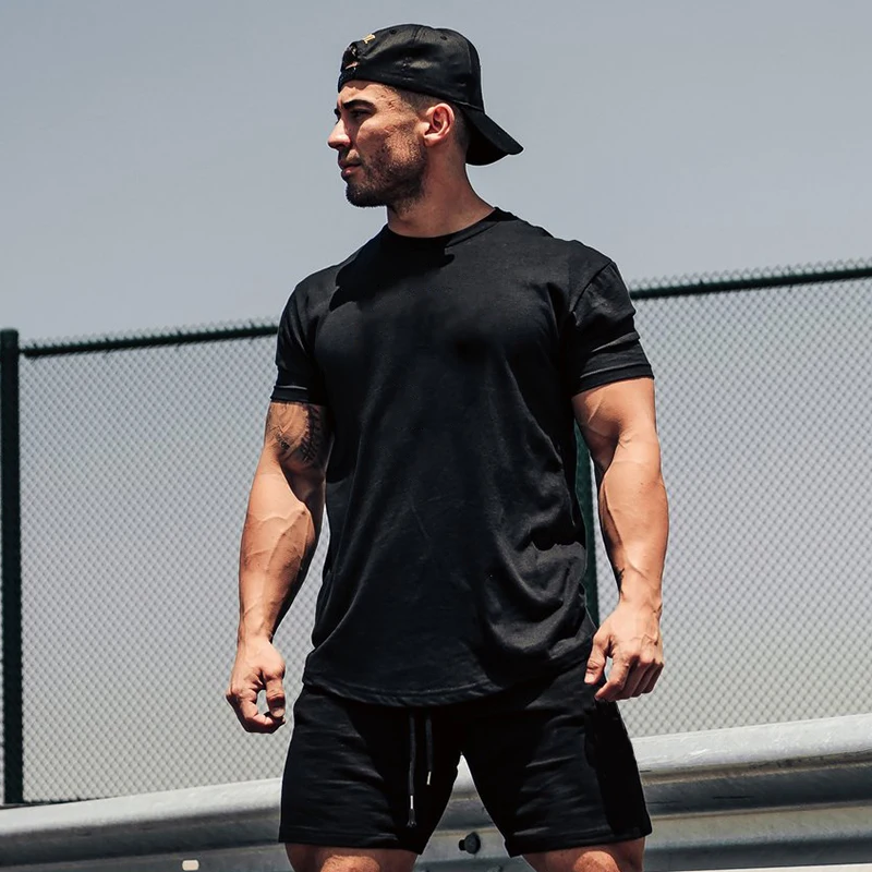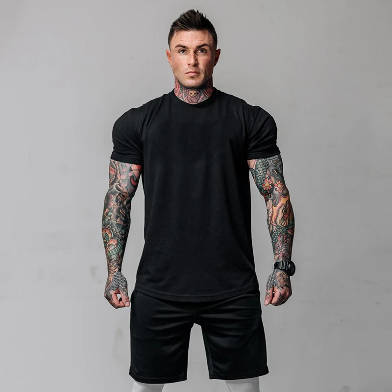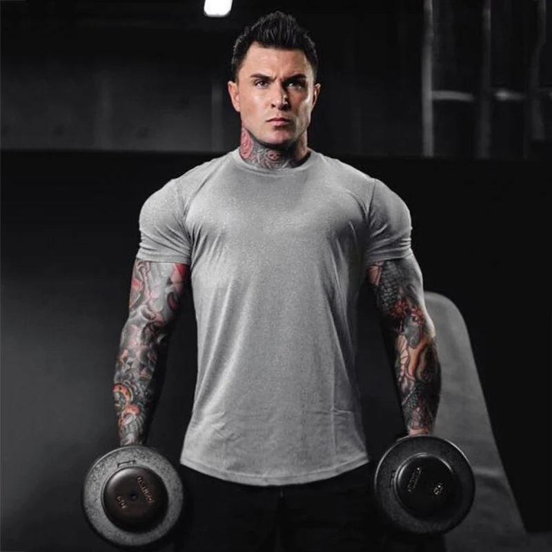 Простая одежда для тренажерного зала, модная футболка, мужская хлопковая дышащая мужская футболка с коротким рукавом для фитнеса, летняя футболка, Повседневная футболка для мужчин