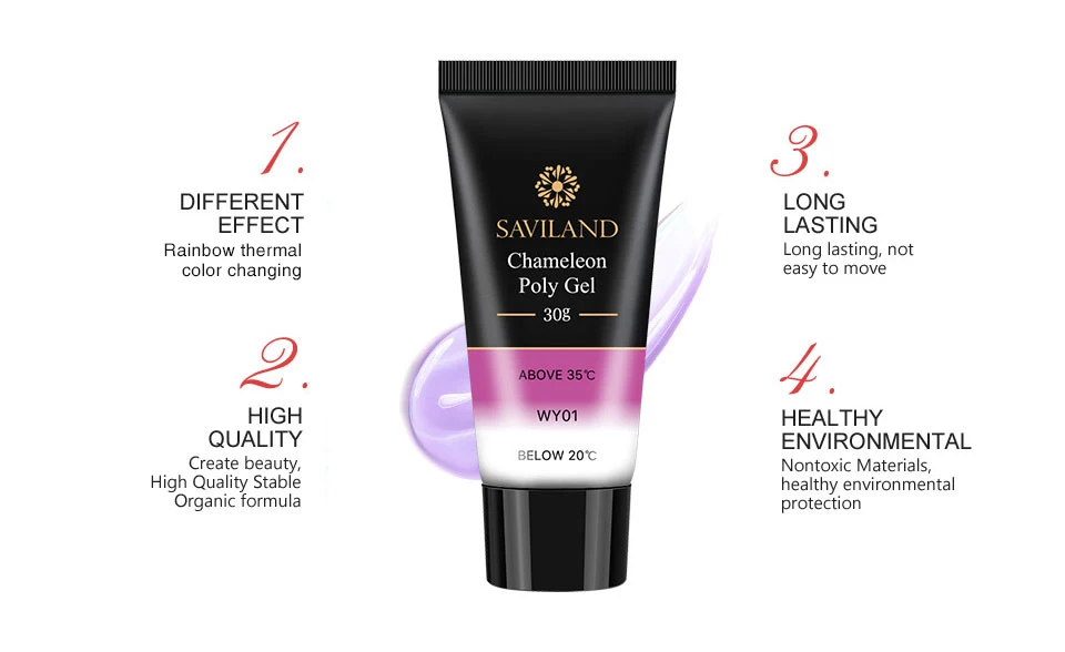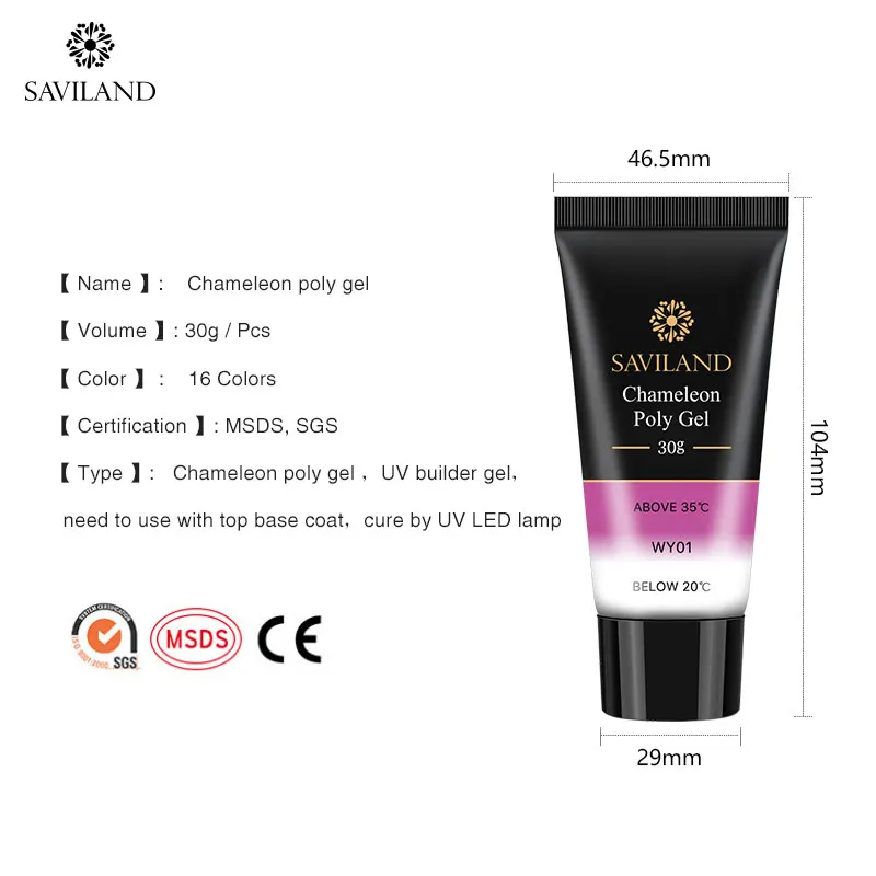 Полигель для ногтей SAVILAND 30 мл, меняющий цвет, термальный удлинитель для ногтей, акриловый желеобразный Гель для быстрого наращивания ногтей, УФ-Гель-лак
