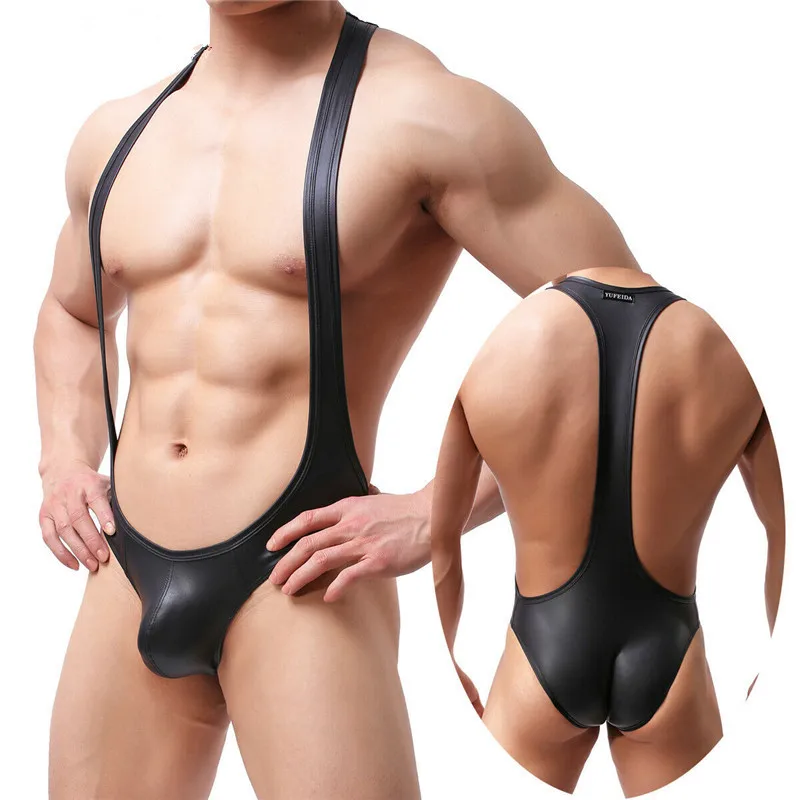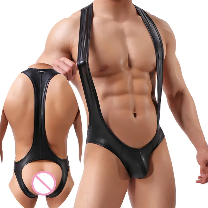 Сексуальное мужское нижнее белье, боди из искусственной кожи, трико, комбинезоны, нижнее белье, борцовка, майка, гей, открытый зад, стринги, трусы, большой мешочек