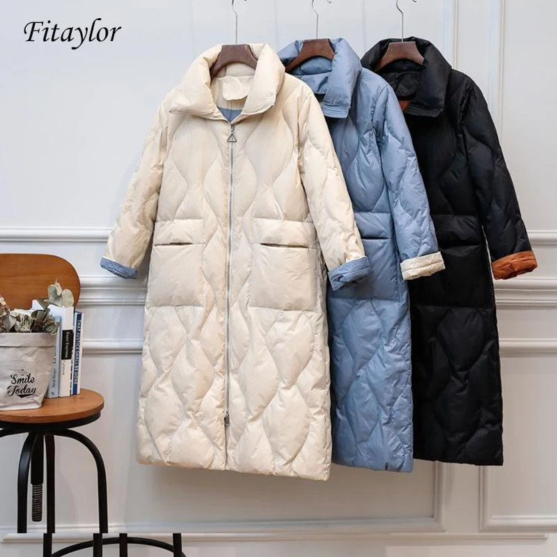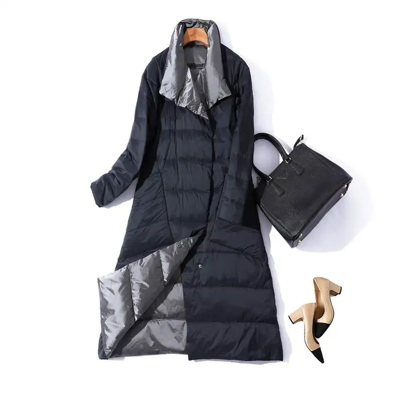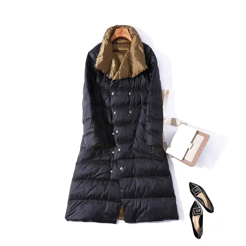 Куртка женская двухсторонняя на утином пуху, теплая, зимняя, размера плюс