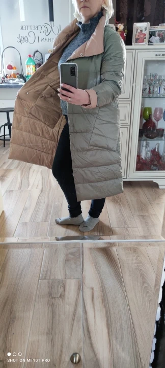 впервые заказываю на Али верхнюю одежду. и очень удачно) цвет совпадает с фото, фасон и ткань по виду тоже. на нашу сибирскую зиму пуховик, конечно, не подойдёт совсем, тонкий. мне кажется, максимум до -5. на рост 168, на свой российский размер М заказала xxl, чтобы был свободный пуховик. свой оверсайз я получила, но в плечах всё на месте. рукав по длине в самый раз. вторую сторону носить, пожалуй, не буду, швы там вроде аккуратные, но всё равно они видны. продавец очень шустрый, отправил посылку менее, чем через сутки, хоть и в Китае были праздники и выходные дни. но, видимо, из-за этих самых праздников посылка шла до меня три недели)