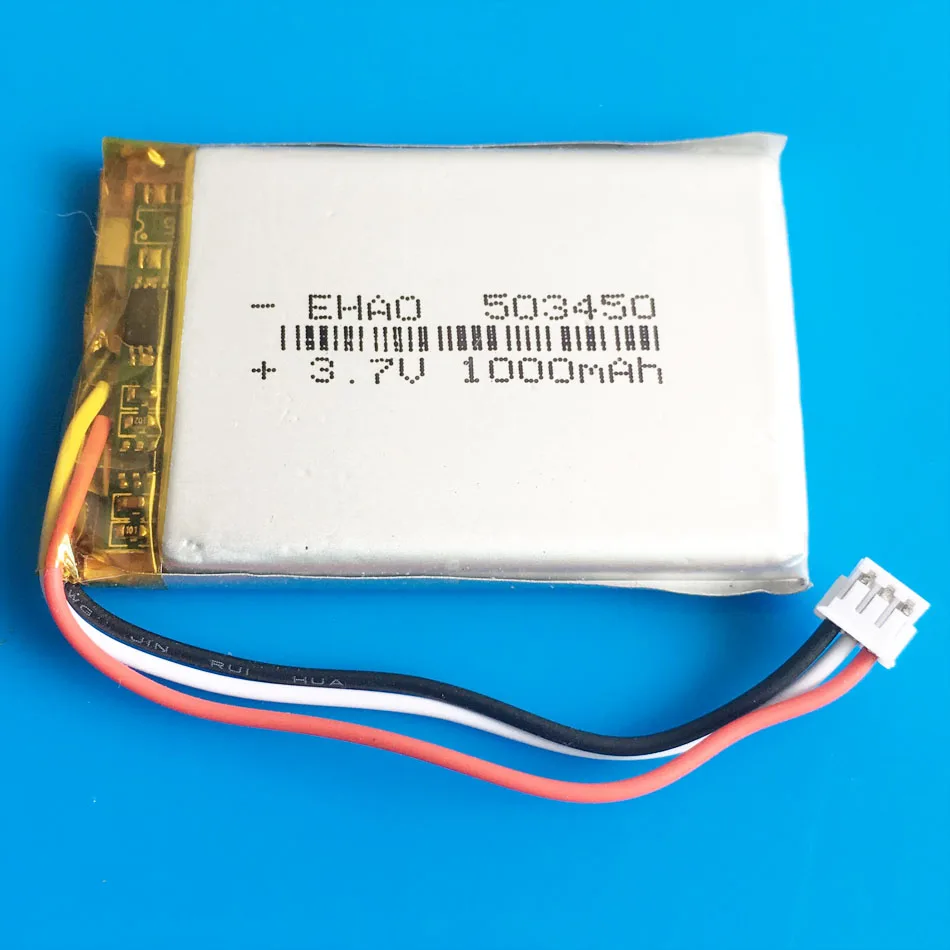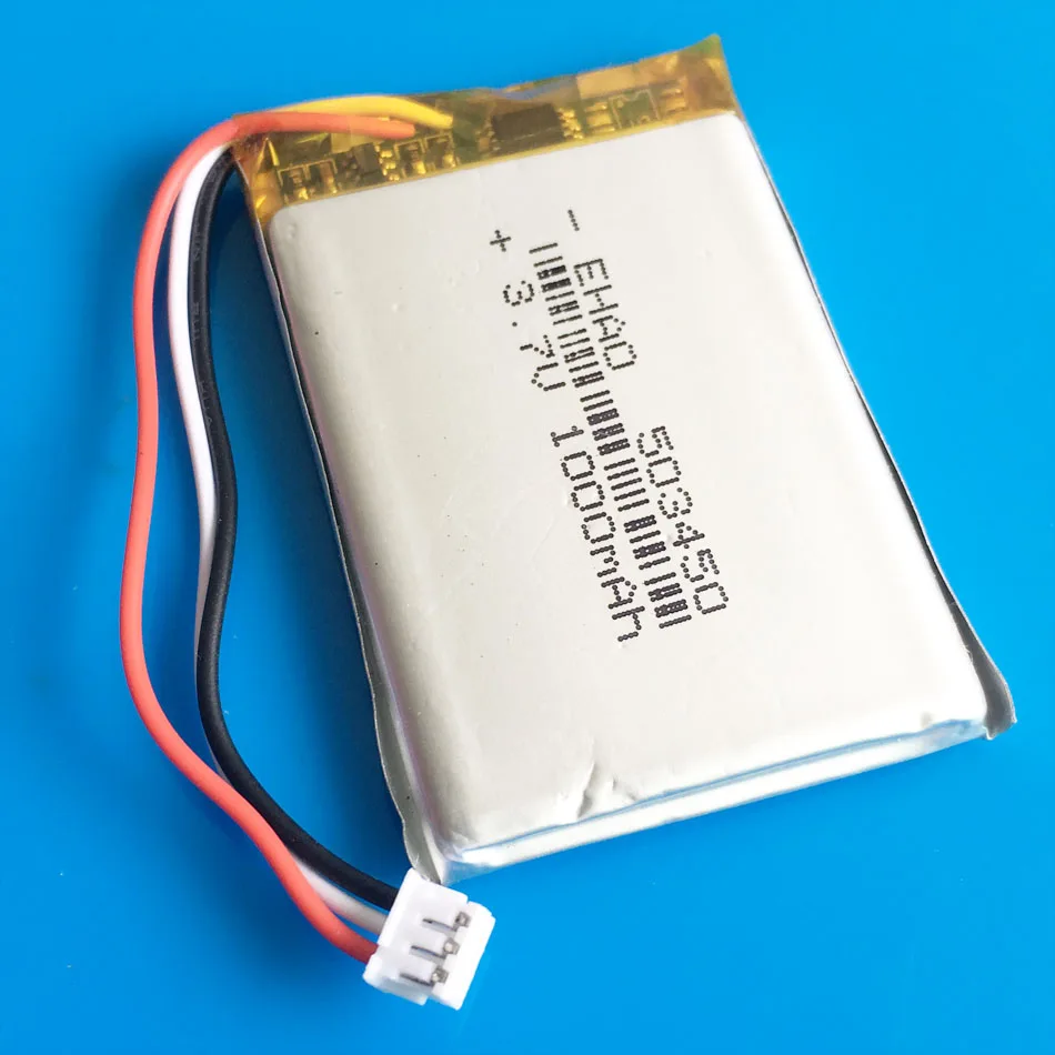 Литий-полимерный аккумулятор JST, 1,5 мм, 3 контакта, 3,7 в, 1000 мА ч, 503450, для смартфонов, DVD, mp3, светодиодных ламп, камер, 5 шт.
