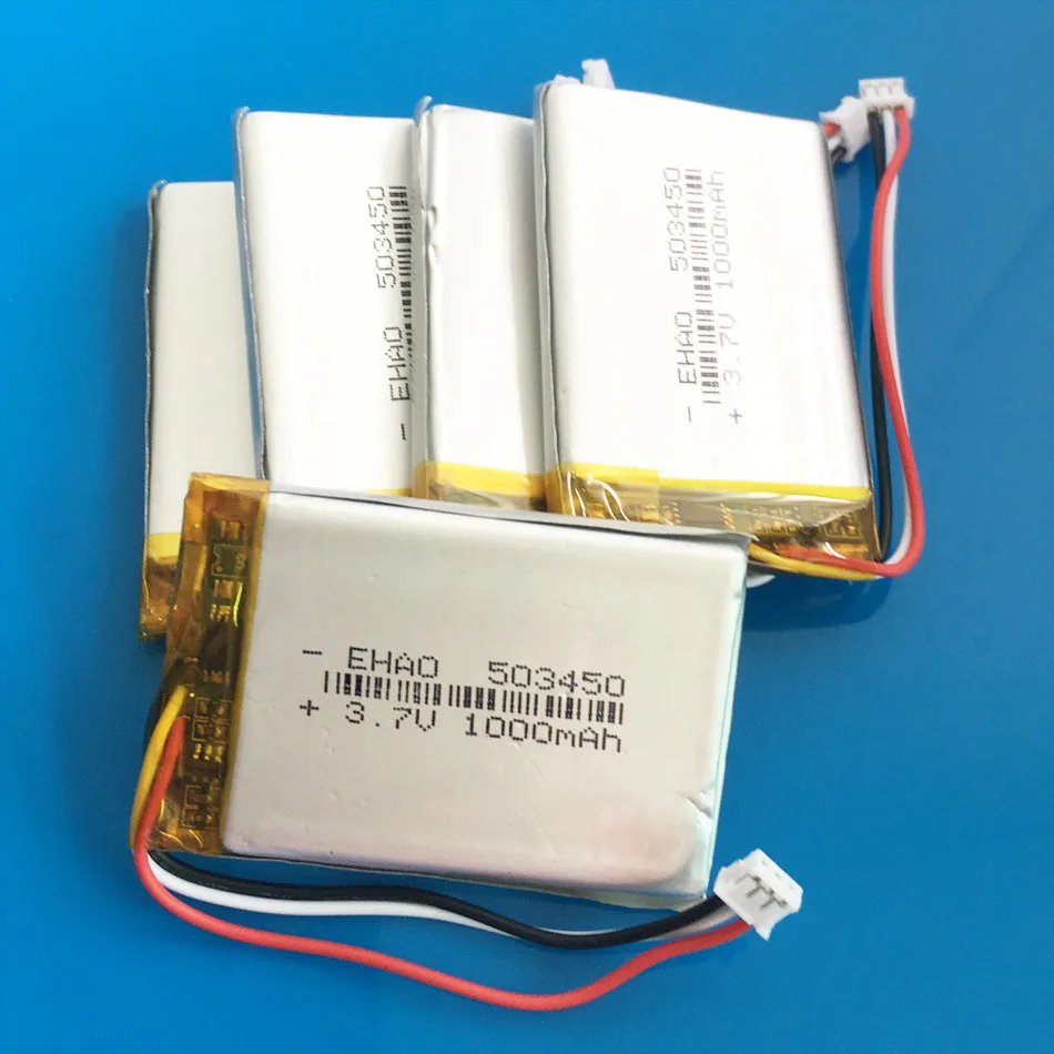 Литий-полимерный lipo перезаряжаемый аккумулятор 3,7 в 1000 мАч 503450, 5 шт. с 3-контактным разъемом JST 1,5 мм.