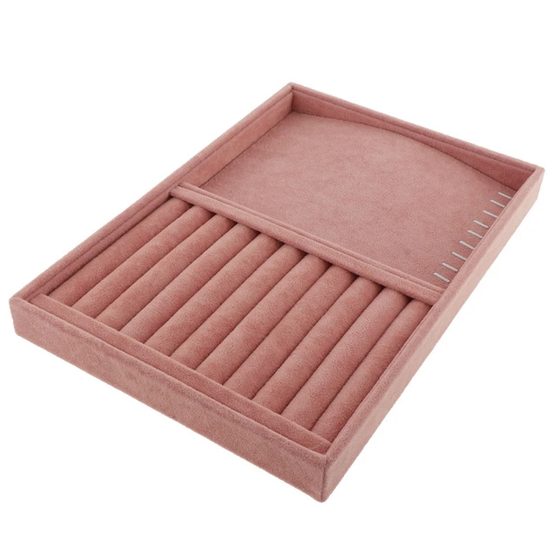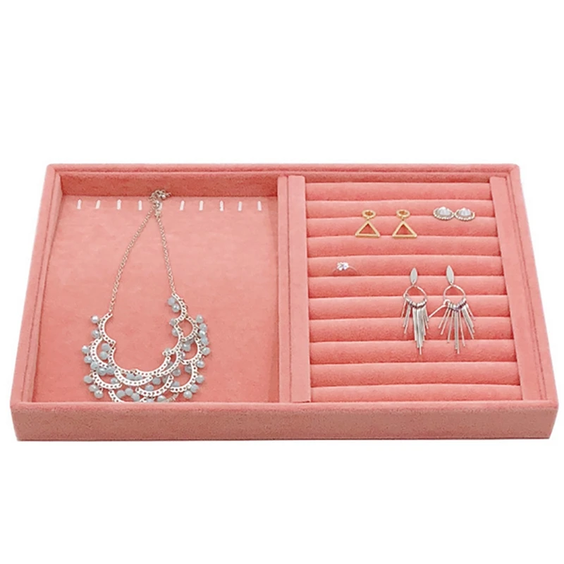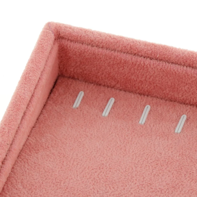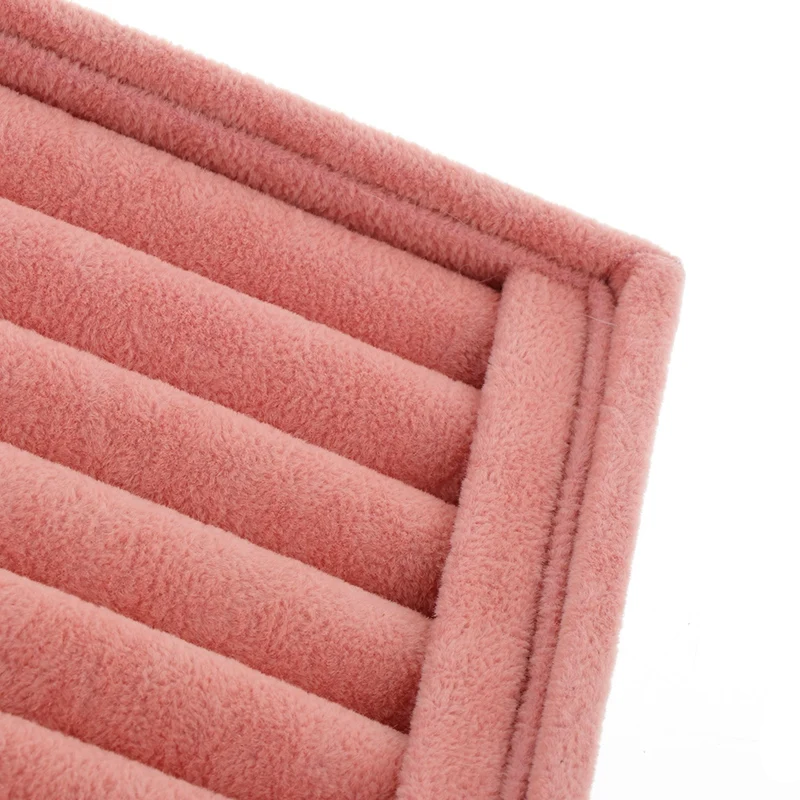 Розовый бархатный чехол-органайзер для ювелирных изделий с кольцом, держатель для лотка, ожерелье, серьги, коробка для хранения браслетов, чехол-подставка для ювелирных изделий