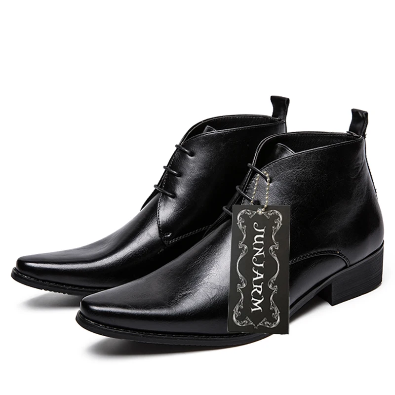 Ботинки JUNJARM мужские классические, Винтажные ботинки челси, заостренный носок, на шнуровке, деловой стиль, коричневые, Botas Hombre