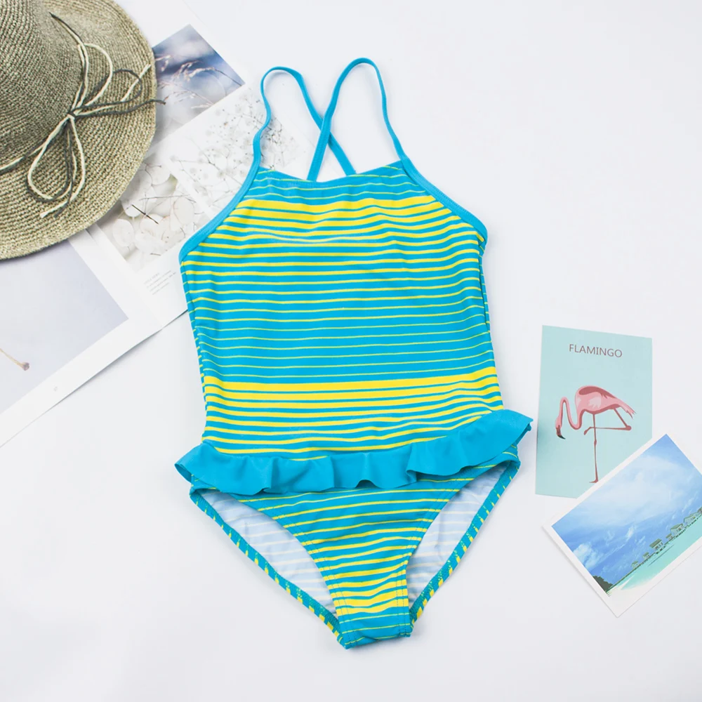 Слитный купальник для девочек, летний, с принтом, От 5 до 12 лет