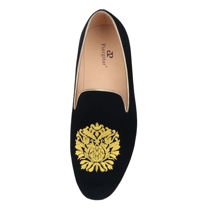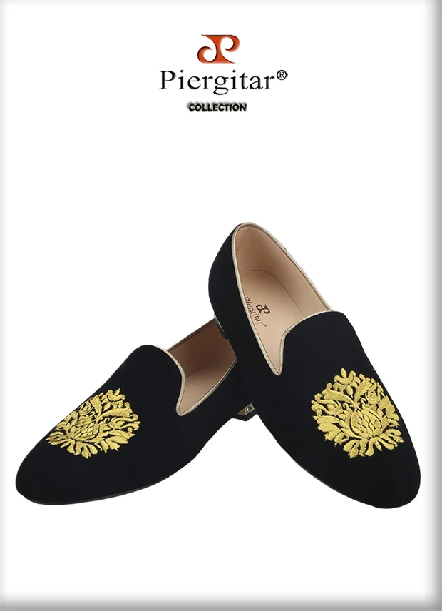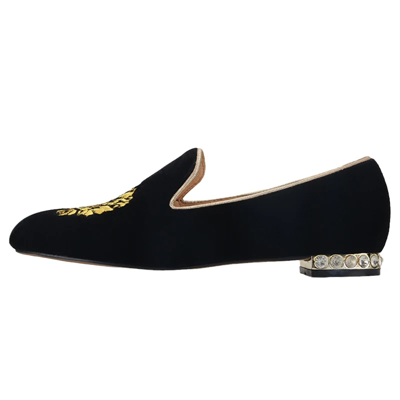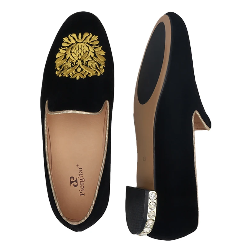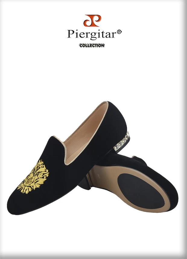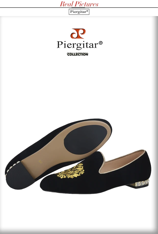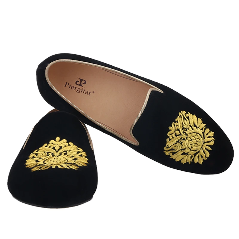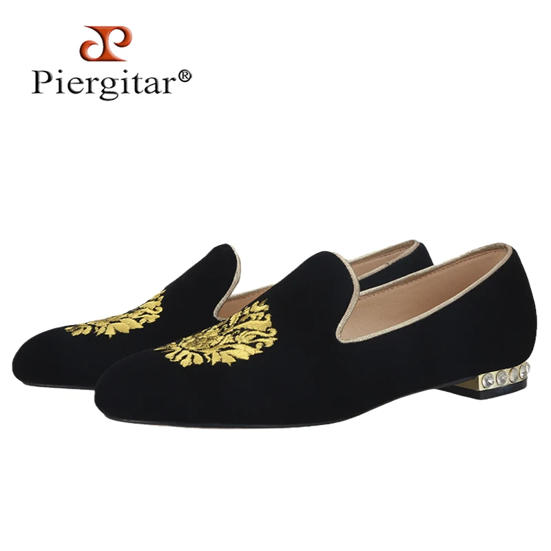 Женские вельветовые туфли Piergitar, повседневные лоферы на плоской подошве, с золотой цветочной вышивкой, стразы, 2019