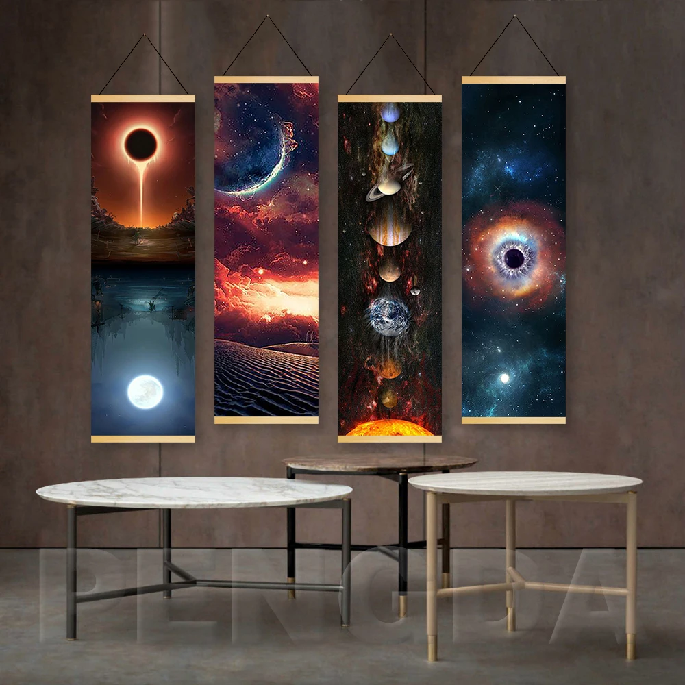 Печать на холсте постер из массива дерева подвесной свиток домашний...