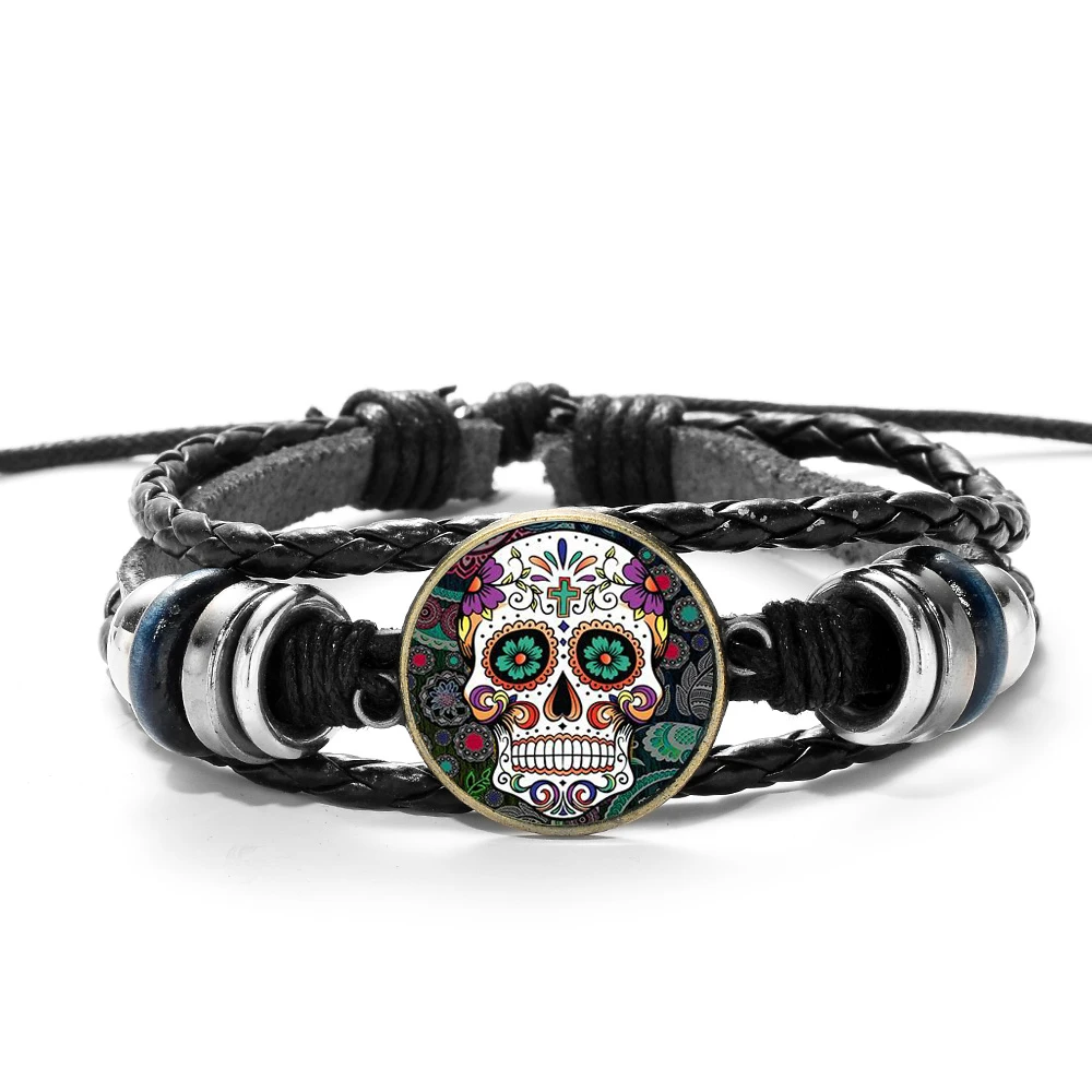 Винтажный цветной браслет с изображением сахарного черепа и цветов,...