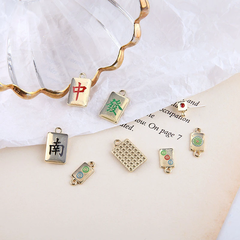 10 шт., 2020, оптовая продажа, креативные, веселые, сплав, капля, масло, маджонг, кулон, пинцет, серьги-гвоздики для женщин, материал, ювелирные аксессуары