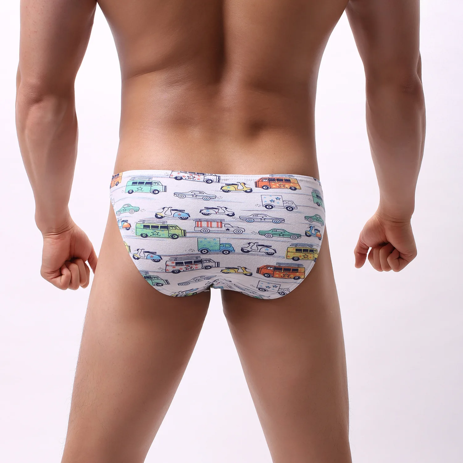 Трусы мужские бесшовные с мультяшным принтом, Брендовое пикантное нижнее белье для мужчин, трусы-плавки для геев, дышащее бикини, 2019