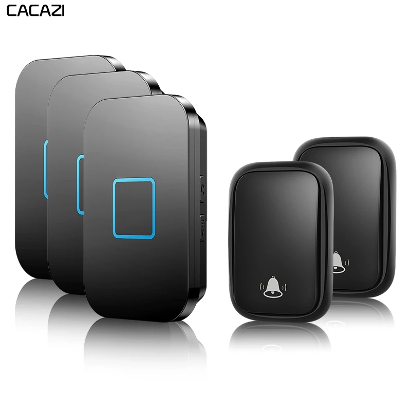 Беспроводной дверной звонок CACAZI с автономным питанием, требуемая Кнопка без батарейки, штепсельная вилка стандарта США, ЕС, Великобритании, Австралии, приемник с дистанционным смарт-звонок, 150 м