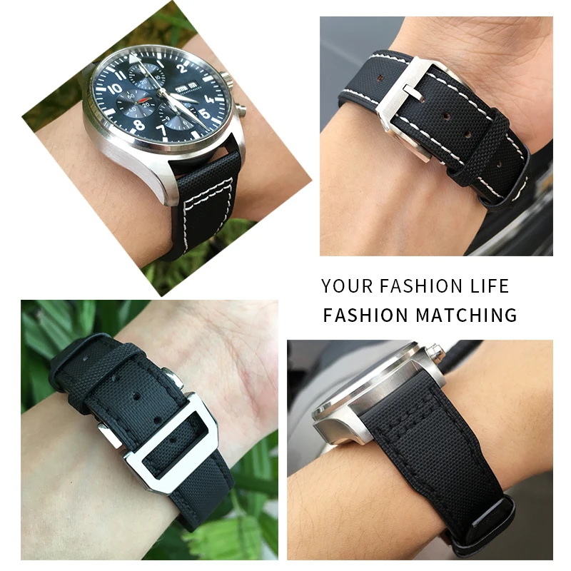 Черный нейлоновый ремешок для часов, 20 мм, 21 мм, 22 мм, тканевый ремешок для часов IWC PILOT PORTUGIESER Mark Series Watch