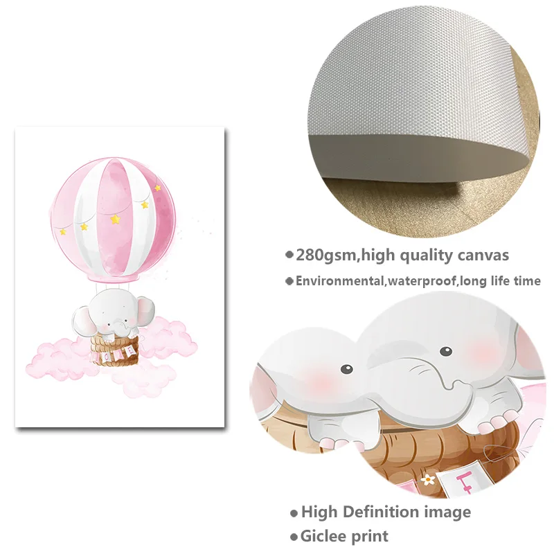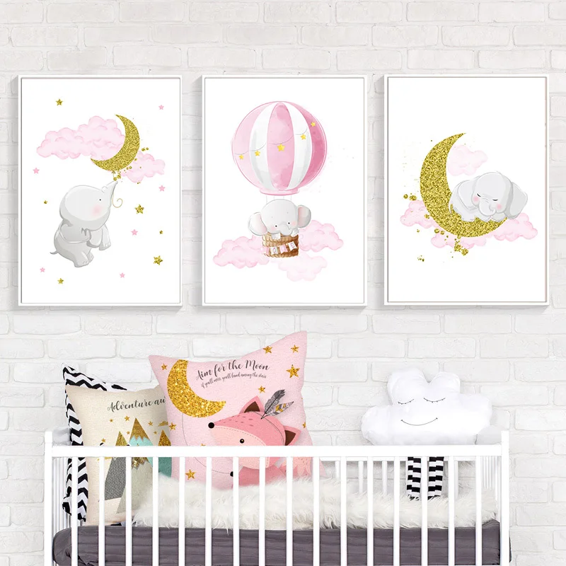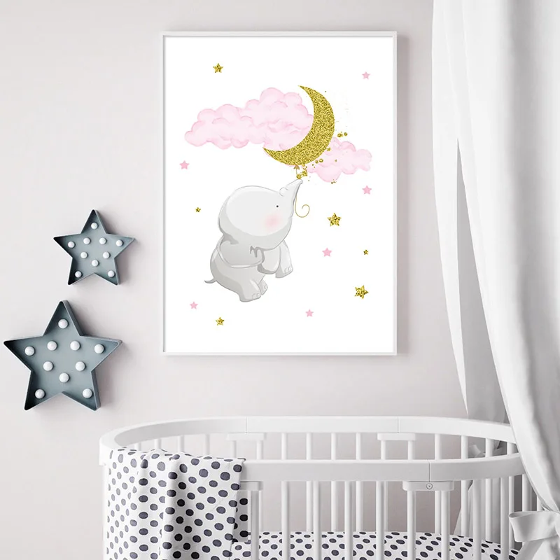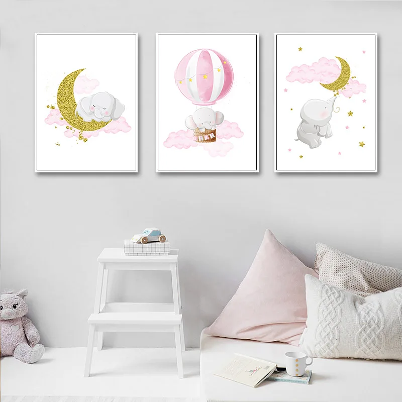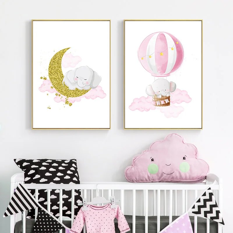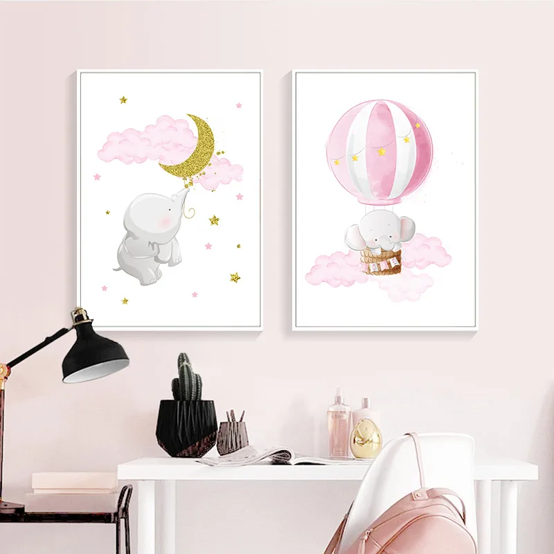 Розовый Очаровательная модель в виде слона Moon холст картины детск...