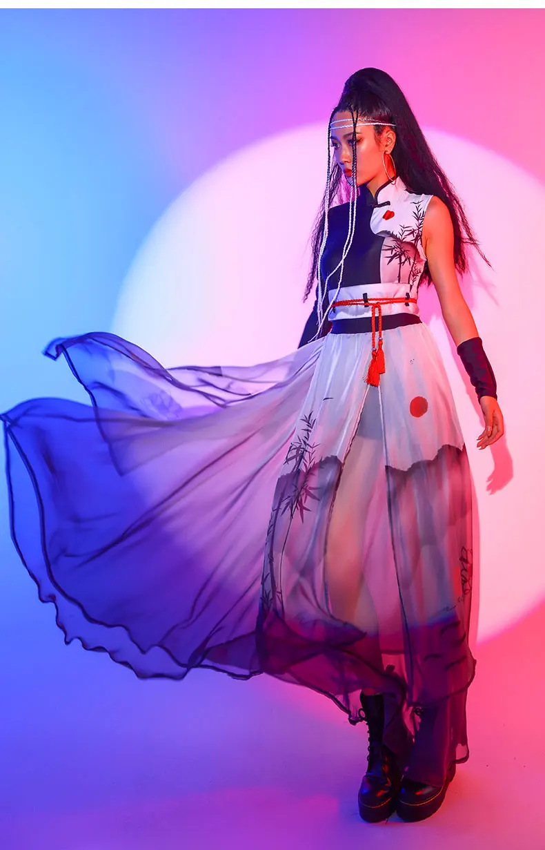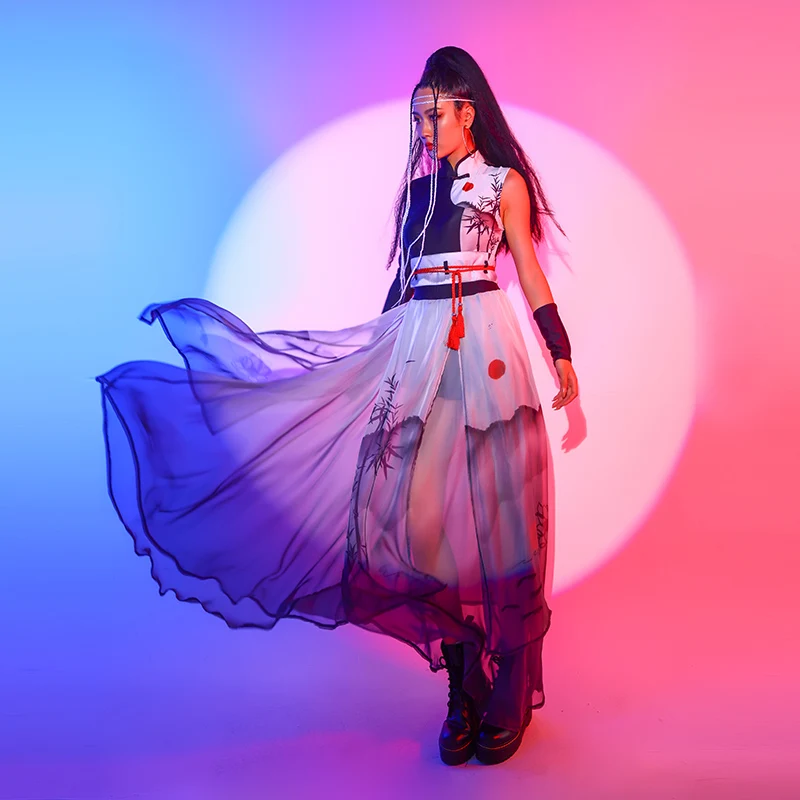 Ночной клуб сексуальные костюмы в китайском стиле для джазовых танцев женский праздничный наряд рейва одежда для женщин для взрослых певец Dj сценическая одежда DN9625