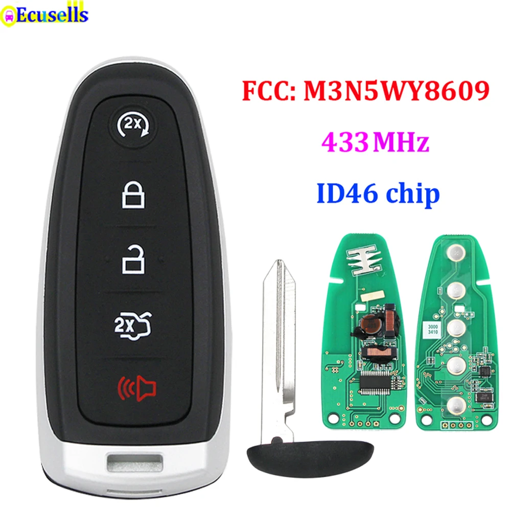 5 кнопки смарт Prox Брелок дистанционного передатчика 433 МГц ID46 PCF7953 чип для Ford Explorer Край Экспедиция FCC, аддитивного цветового пространства: M3N5WY8609