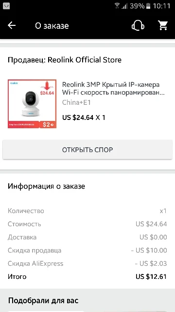 камеру получил через месяц. спасибо Reolink за хорошую цену. купил за 12 $. очень рад такой покупке. продавец подарил купон на 10 долларов во время просмотра обзора во время распродаж. камера подключилась быстро. в настройках всё понятно. некакого глюка не выявлено во время теста. кому интересно смотрим полный обзор на ютубе. читал один комментарий, что мол продавец если цену скидает то высылает брак. да печалька, заметно таких дебилов тут полно. короче, камеру советую, как и всё понимающие тут люди.