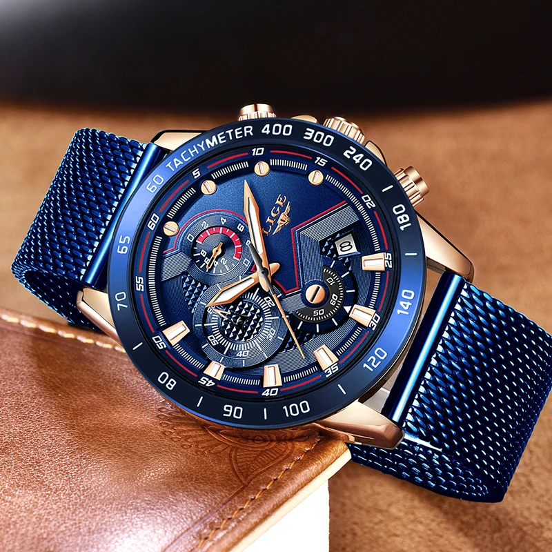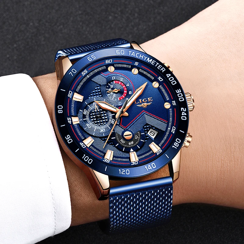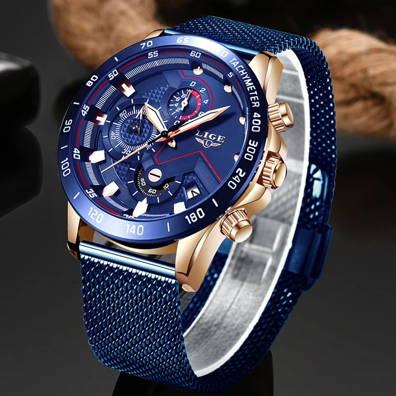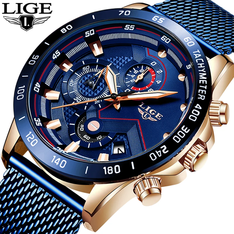 Relojes Hombre 2019 LIGE новые мужские часы для мужчин повседневные синие наручные часы с ремешком-сеткой модные кварцевые наручные часы с датой Спортивный Хронограф