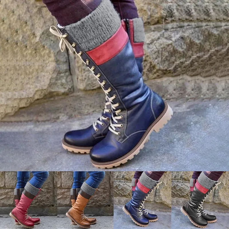 Сапоги LOOZYKIT2020 женские до середины икры, базовые, на платформе, с круглым носком, на молнии, теплая обувь на шнуровке, зима