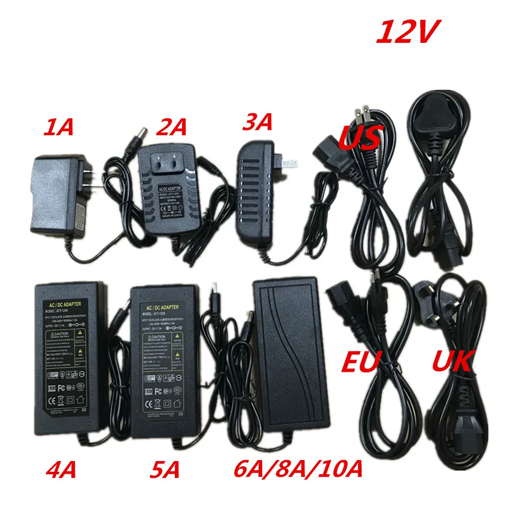 Адаптер питания для зарядного устройства, 1 шт., 100-240 в перем. Тока в постоянный ток, 12 В, 1 А, 2 А, 3 А, 5 А, 6 А, 8 А, 10 А, ЕС, США, AU, Великобритания, 5,5 мм x 2,1 мм
