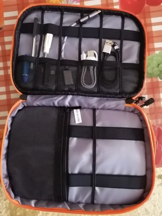 Нравится качество сумки. Хороший выбор для организации кабелей USB мобильных телефонов и т. Д.