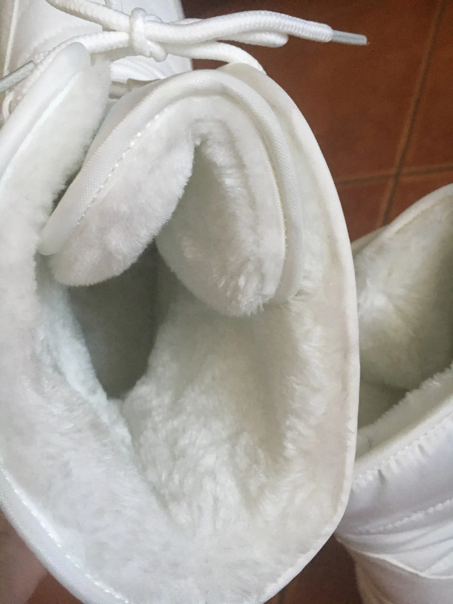 сапоги отличные, очень теплые, судя по всему, внутри полностью мех взяла себе белые(они кипельно белые) подружке чёрные..мой российский 38, на али всегда беру для 24,5см, себе взяла 7,5- очень хорошо, слегка свободноваты, как здесь пишут есть место для носка)))), но я так люблю мне удобно, при этом с ноги не падают, мягкие, подошва гнется отлично, ходить удобно..пойдут на широкую ногу...подружке взяла 7ку на её российский 37, ей отлично, но мне впритык..так что имейте в виду, разница между половинками китайских размеров огромна..7,5-велик, 7-уже тесноват..