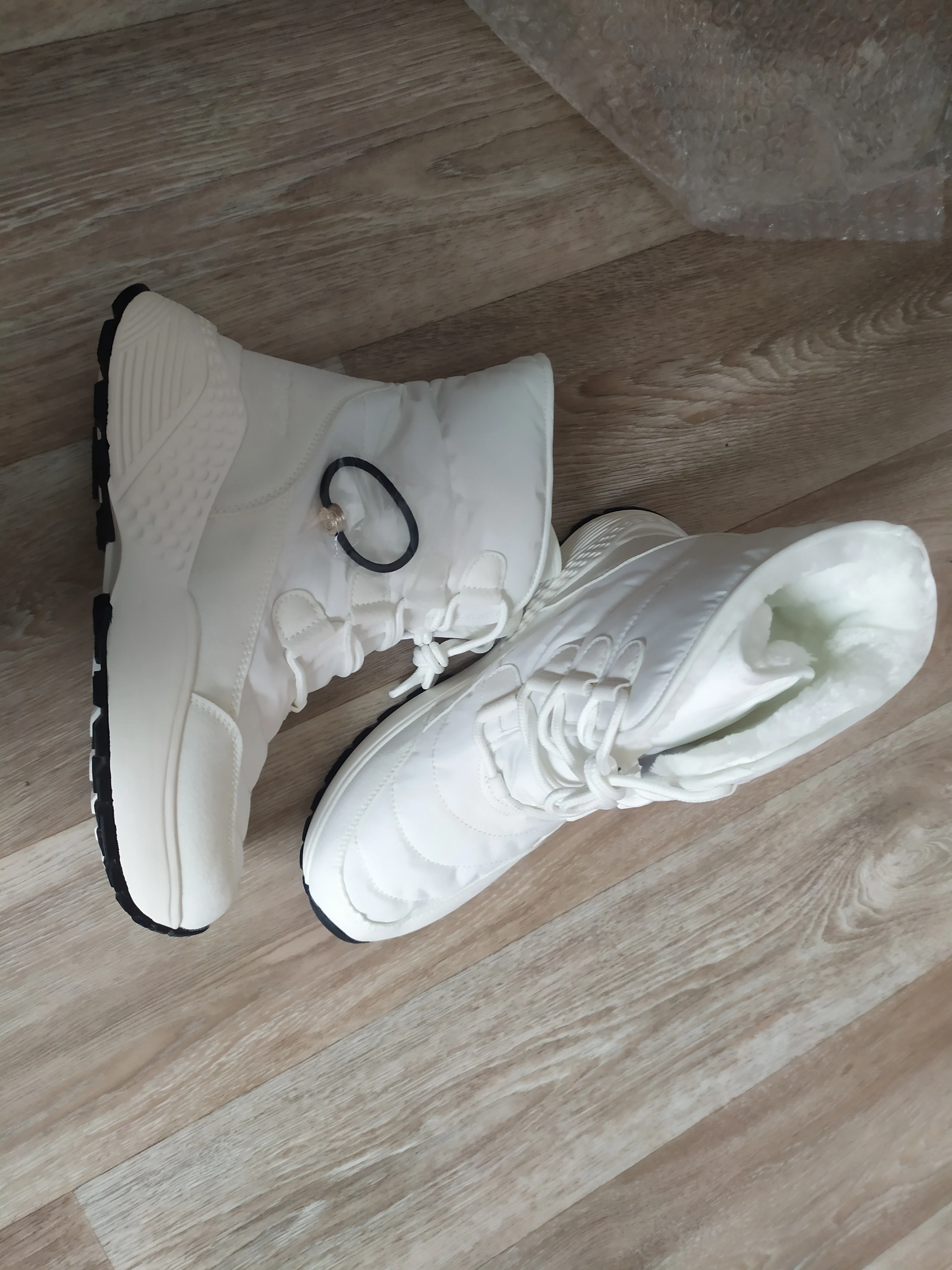 Ботиночки просто супер Лёгкие, теплые, сидят на ноге идеально. на свой российский 37 размер взяла 39. Есть небольшой запас для стельки, как я и хотела. Однозначно рекомендую. Продавец положил ещё подарок резинку для волос. Спасибо))