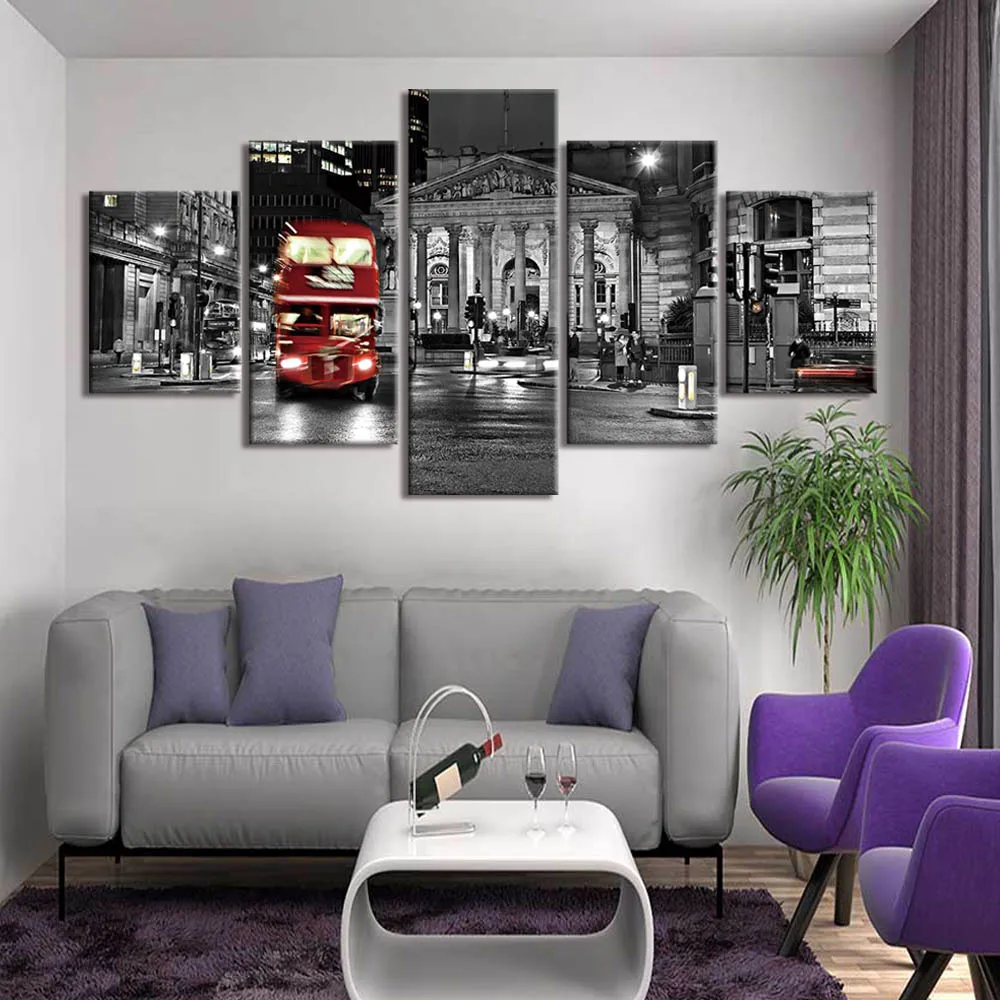 Картина на холсте, домашнее искусство, Лондон, городская улица, красный автобус, плакат и печать, Настенная картина, домашний декор