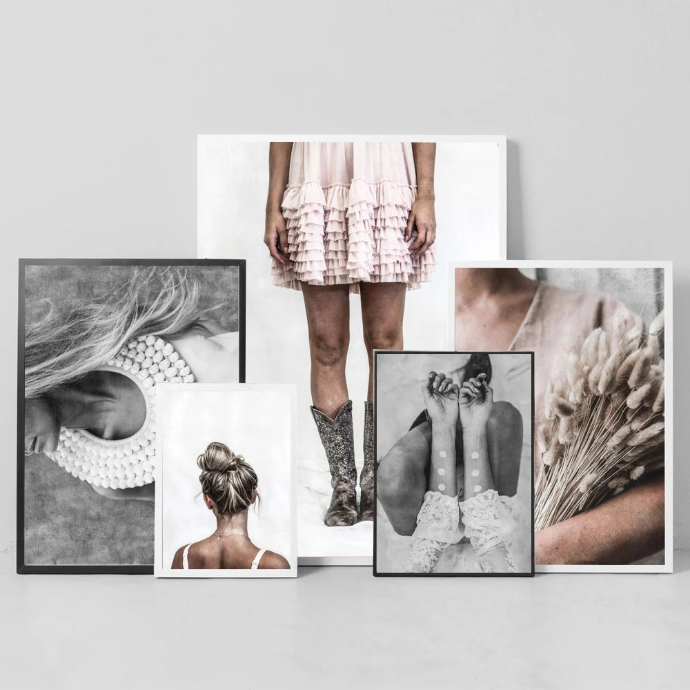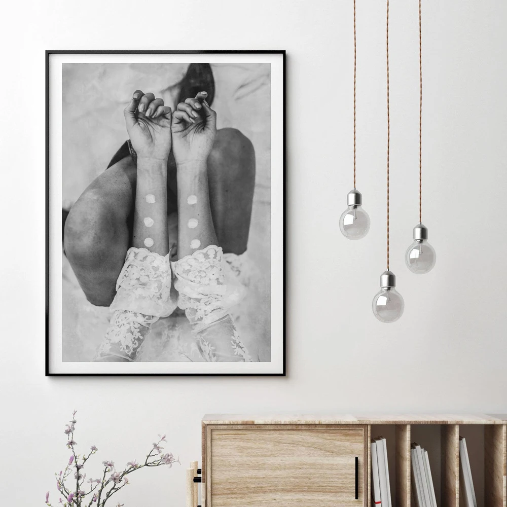 Скандинавские принты Boho Girl, черно-белый постер ручной работы, Настенная живопись на холсте для гостиной, абстрактные модульные картины, домашний декор