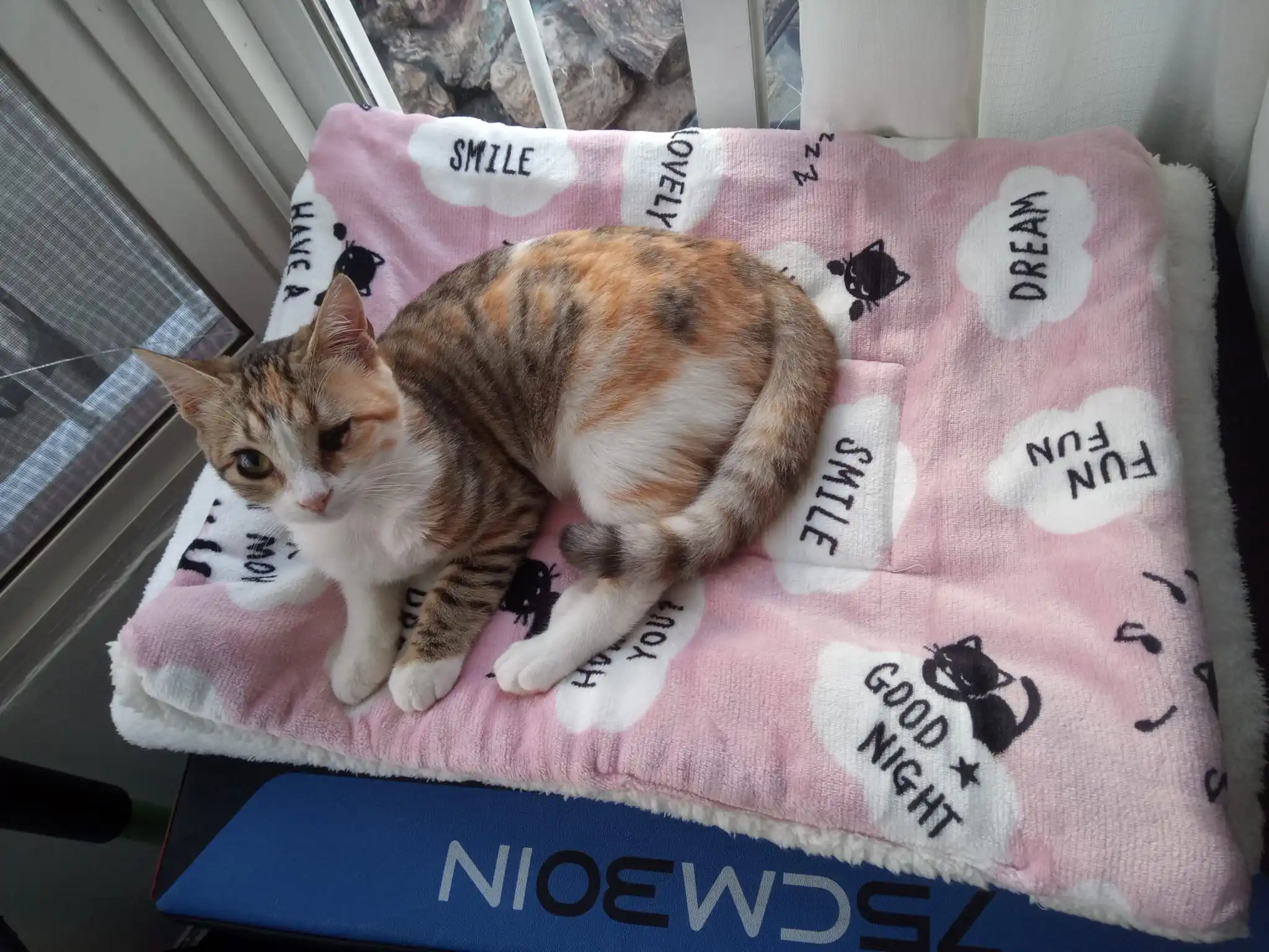 Мягкий милый пледик, кот теперь с удовольствием валяется на нем на подоконнике