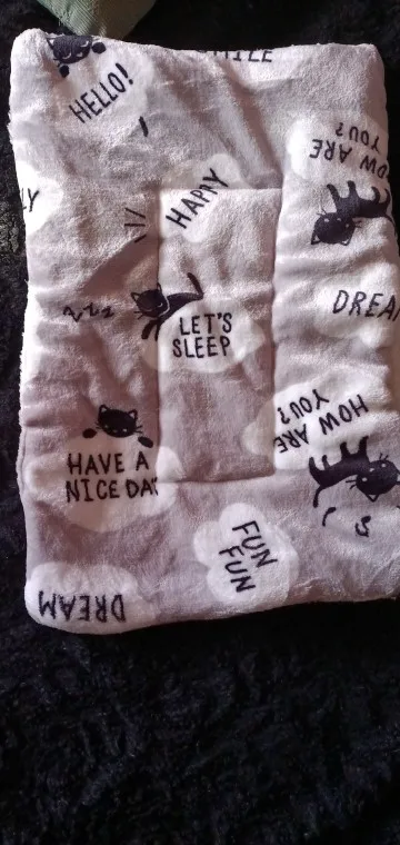 замечательная подстилочка.мягкая приятная.с каждой стороны материал разный.и пришла быстро.брала для котенка 8месяцев.достаточно большой уже.самый маленький размер отлично подошёл ему