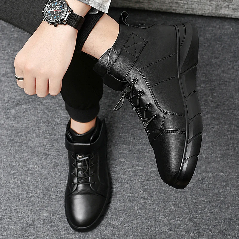 Мужская кожаная обувь с высоким берцем, брендовая повседневная обув...